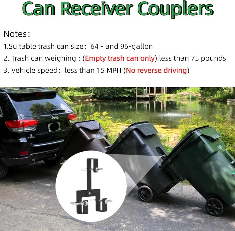 ملحوظة: هذا المنتج مناسب للاستخدام فقط في سلات المهملات سعة 64 و96 جالونًا، ويجب استخدامه بسرعة لا تزيد عن 15 ميلاً في الساعة، مع ألا يزيد وزن كل سلة مهملات عن 75 رطلاً، ولا تقم بالنسخ الاحتياطي أثناء سحب سلة المهملات