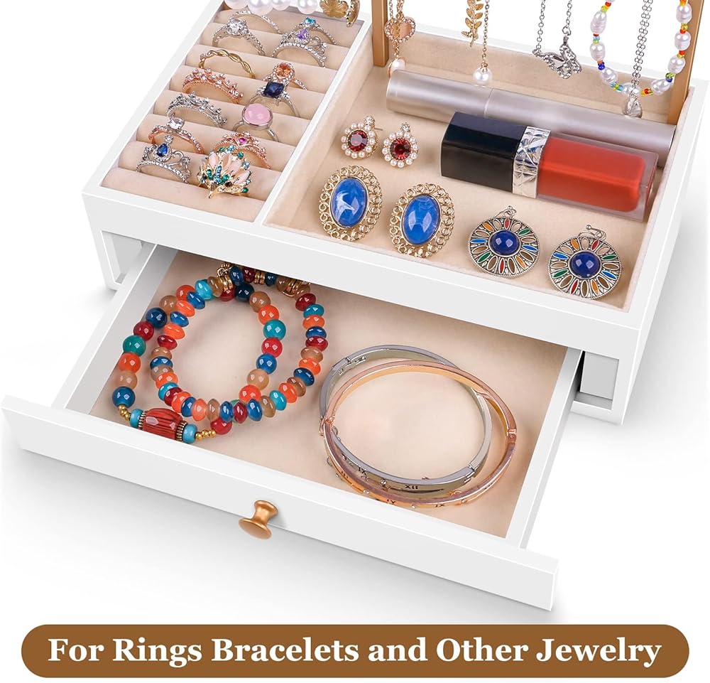 شجرة حامل المجوهرات من تيمكيو مع صندوق تخزين أبيض كبير، شجرة عرض منظم المجوهرات على الطاولة للقلائد والخواتم والأساور والساعات