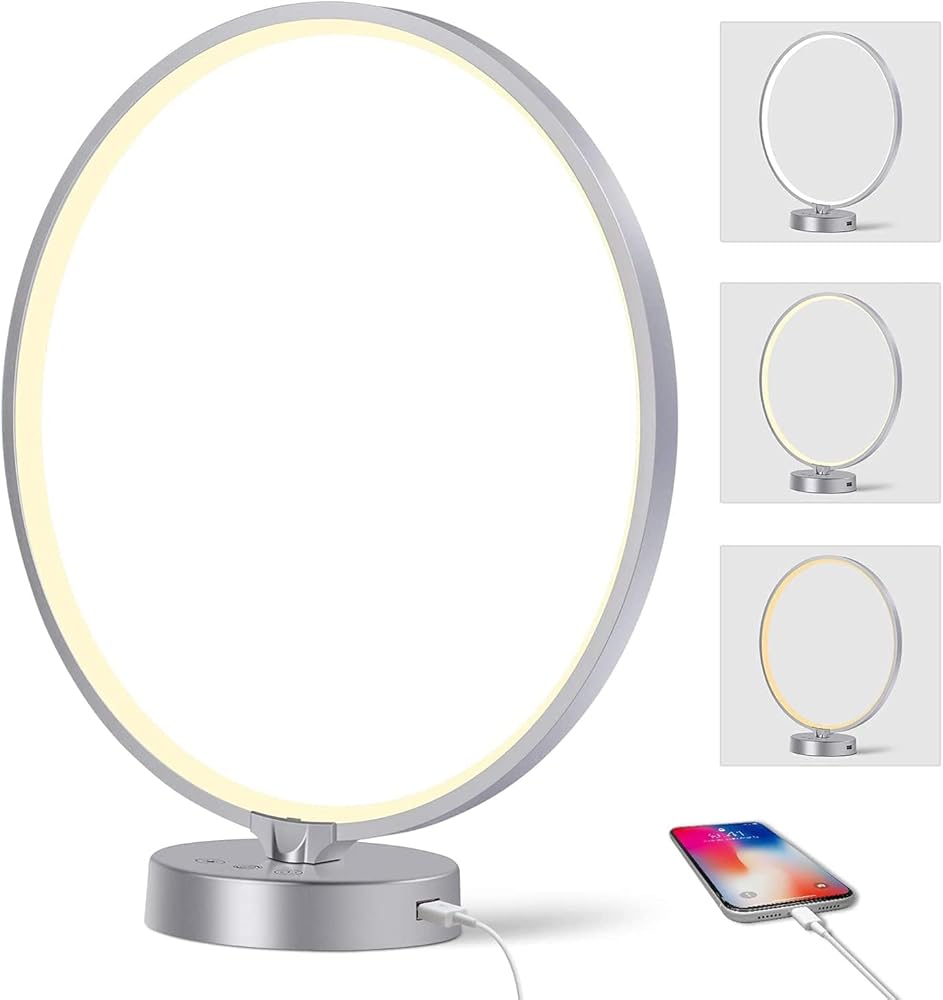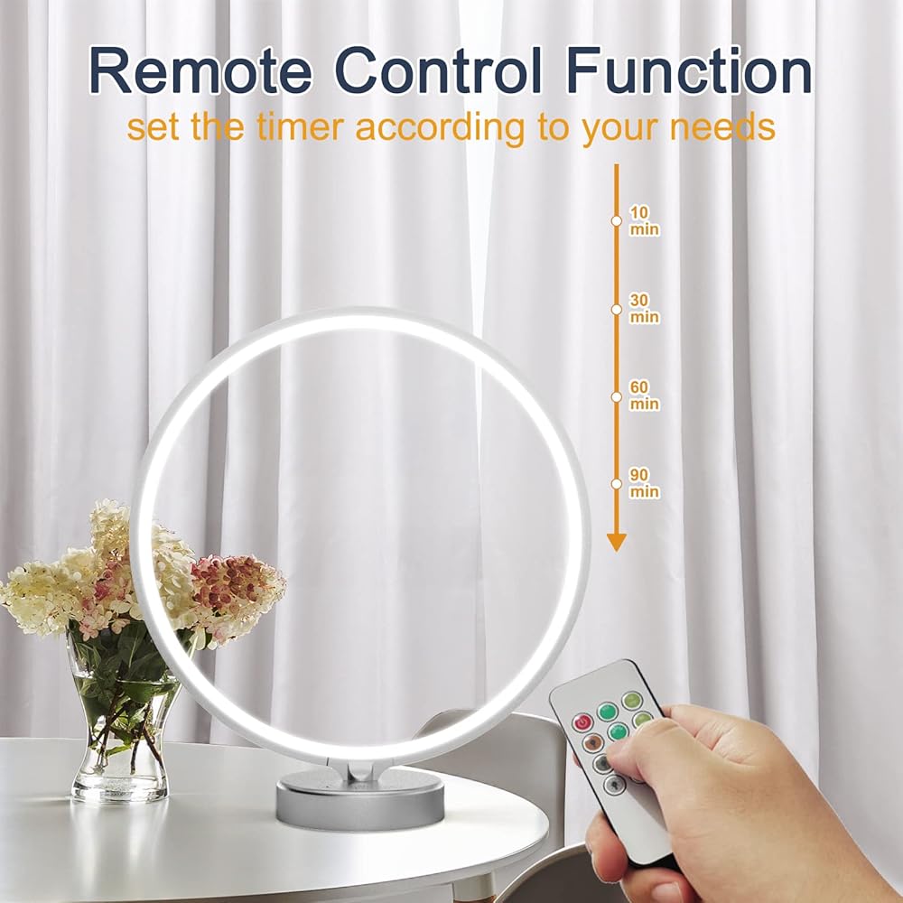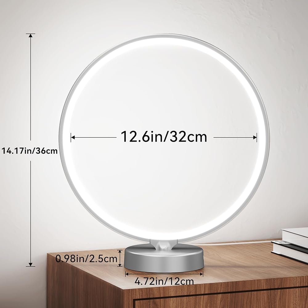 • 【ليس فقط ضوء علاجي بأشعة الشمس】مصباح ضوء الشمس ليس فقط مصباح علاجي بالضوء 10000 لوكس ولكن أيضًا مصباح مكتبي للقراءة والكتابة/العمل/النوم/الإضاءة، حتى عمل فني ديكور منزلي. يمنحك التصميم الدائري الأنيق انطباعًا بصريًا فريدًا، ويجعل ديكور منزلك مليئًا بإحساس التصميم.