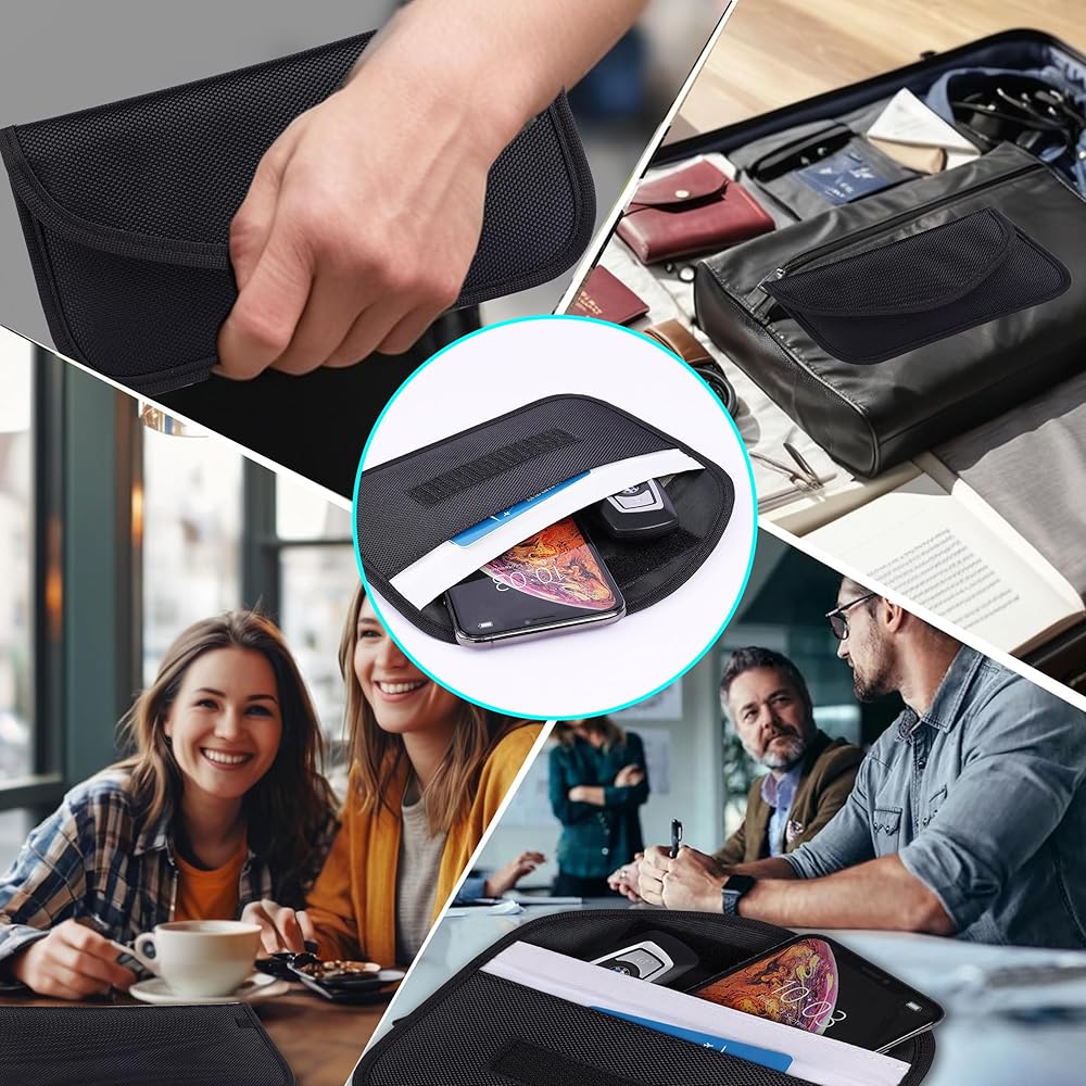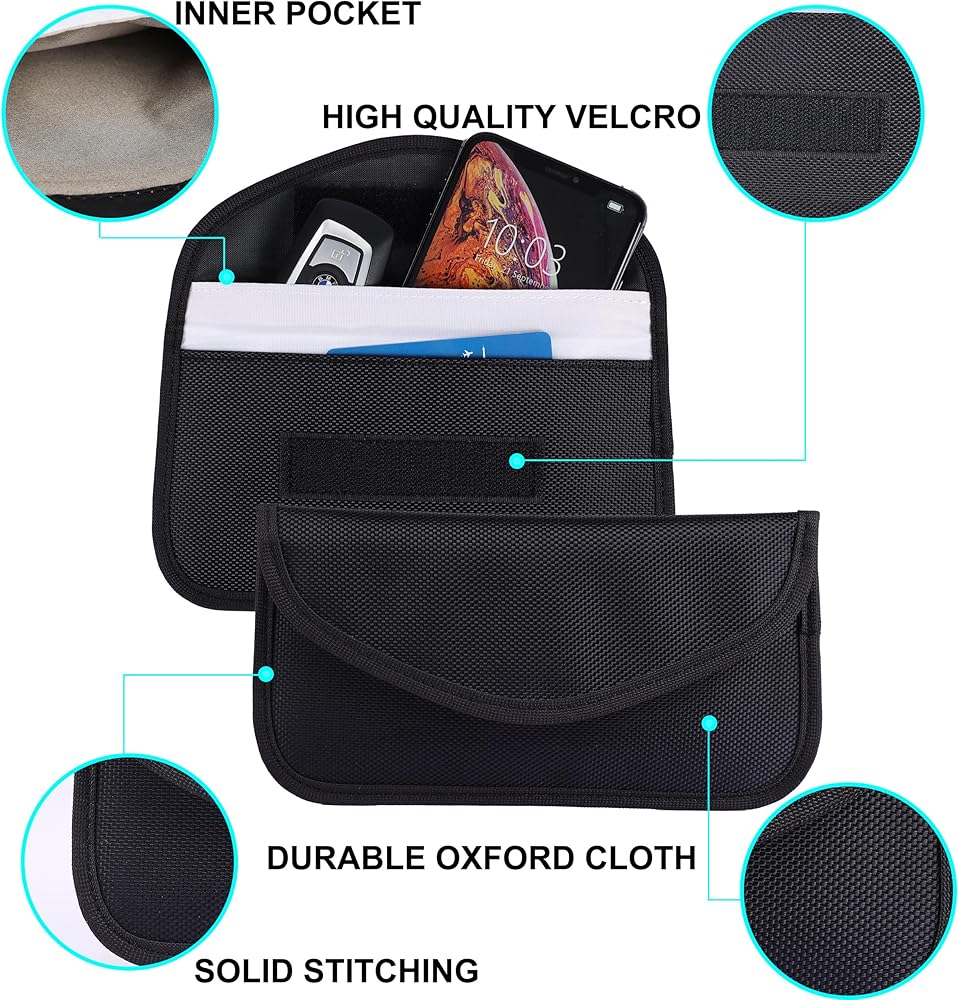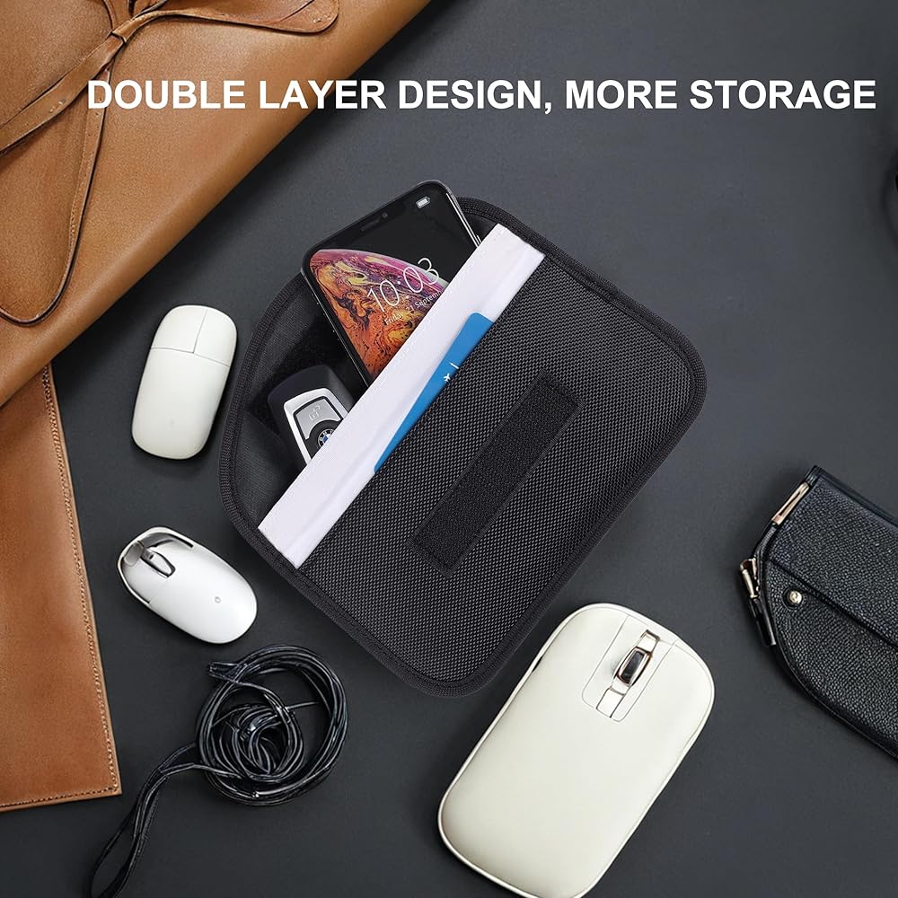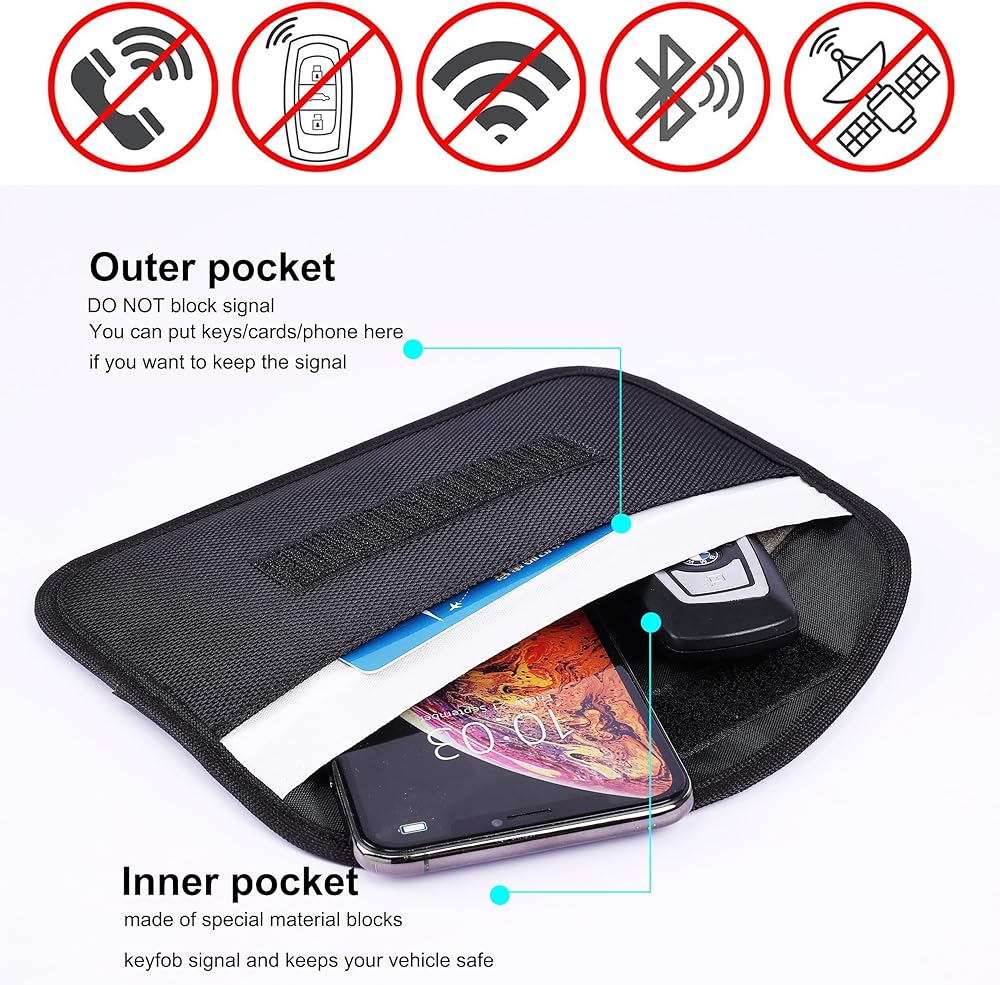 The Amooca Signal Blocking Key Bag provides a double-layer signal shielding, the inner pockets protect your car key from RFID signal theft, anti positioning, and tracking, and the outer pockets don't block signal.