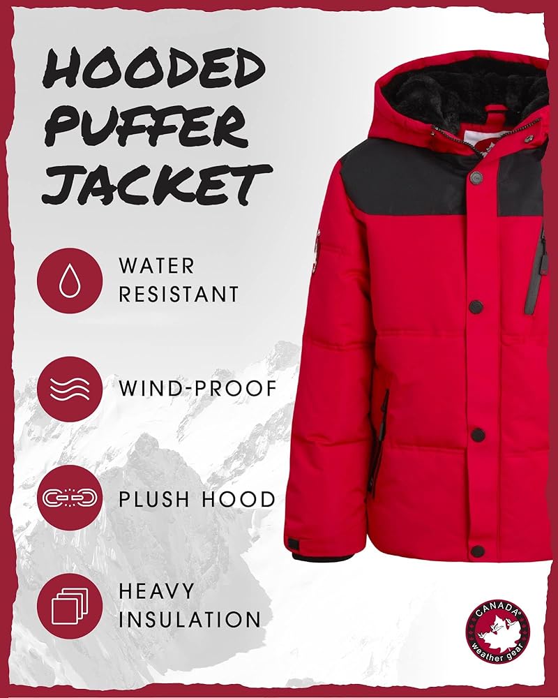 OFFICIALLY LICENSED CANADA WEATHER GEAR: Boys Puffer Jacket; We embrace all weather and all of the traditions that come with it, providing affordable, on-trend apparel and outerwear made for cozying it up or countering the cold