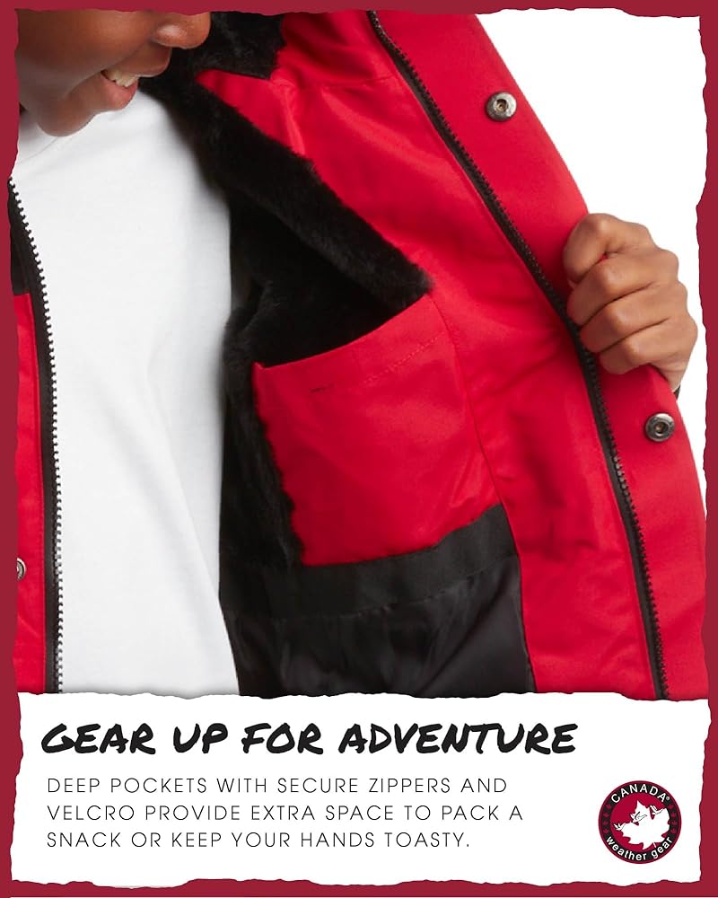 STYLISH DESIGN AND COLOR OPTIONS TO SUIT EVERY TASTE: Available in an array of fashionable colors including Black, Red, and White Mountain Print, this jacket combines functionality with style. Its modern design and versatile color options ensure your child looks stylish while staying warm, making it a perfect addition to their winter wardrobe and suitable for any occasion.