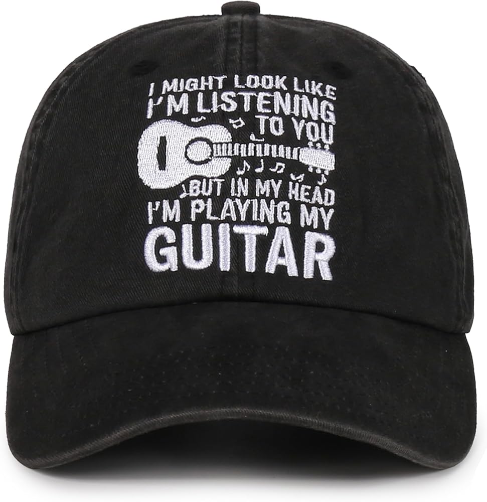 قبعة هدايا الجيتار من InnoBeta للرجال - هيكل عظمي روك آند رول - قبعة مطرزة من القطن المغسول قابلة للتعديل - هدية لمحبي الموسيقى والموسيقي in Kuwait