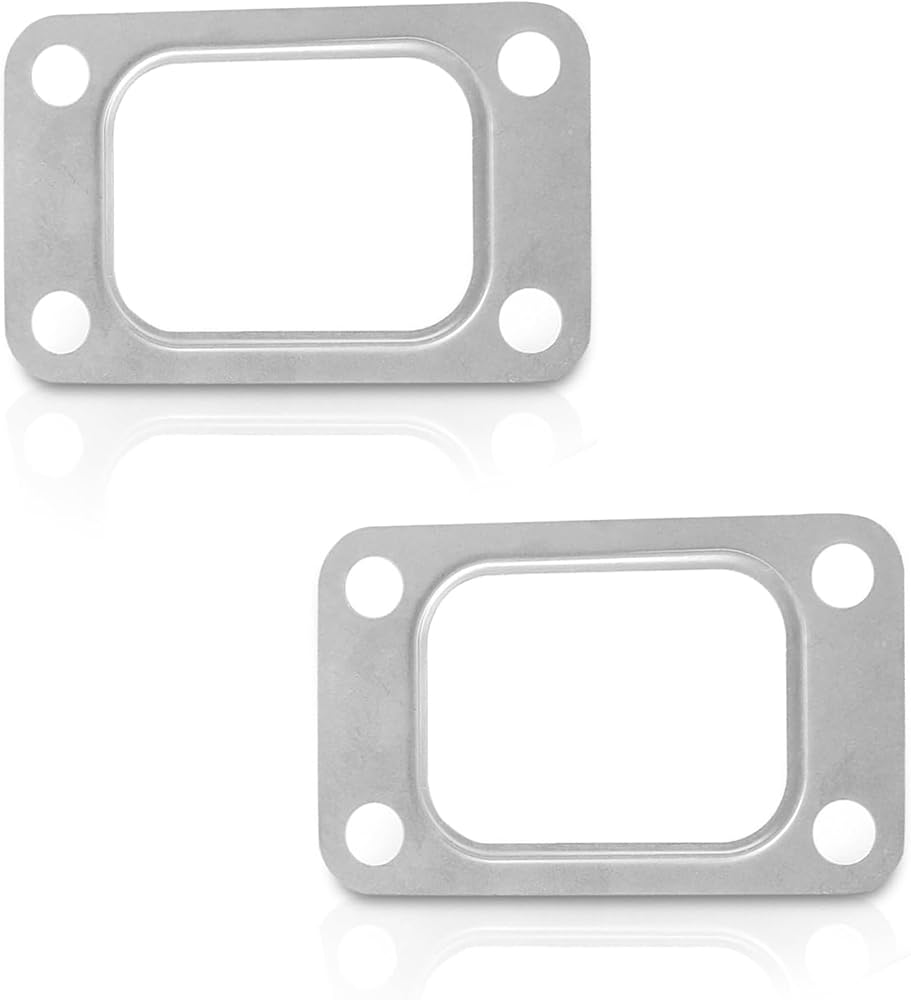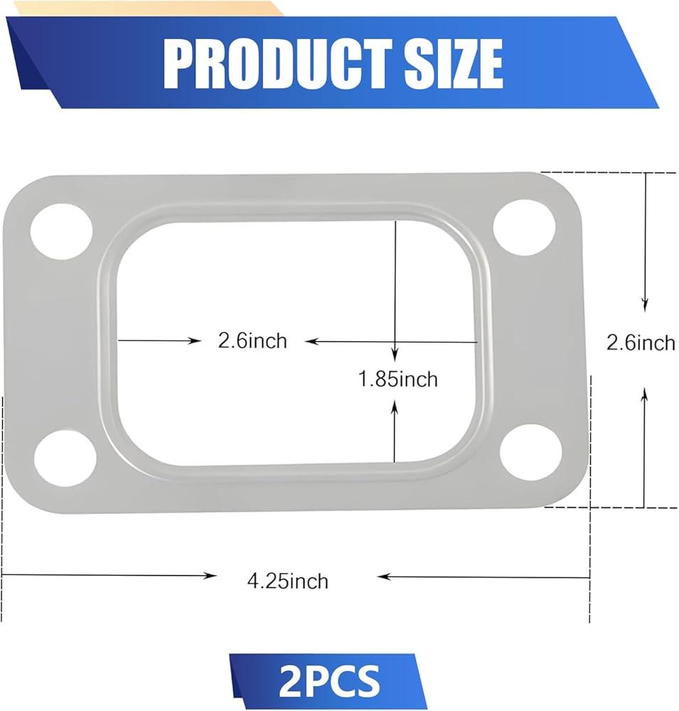 Applicability: This gasket is suitable for cars with T3 T34 T35 T38 GT35 GT35R turbochargers. The package includes 2 4-hole car modification T3 turbine flange gaskets with an overall size of 4.2" x 2.6" and an internal size of 2.6" x 1.85".