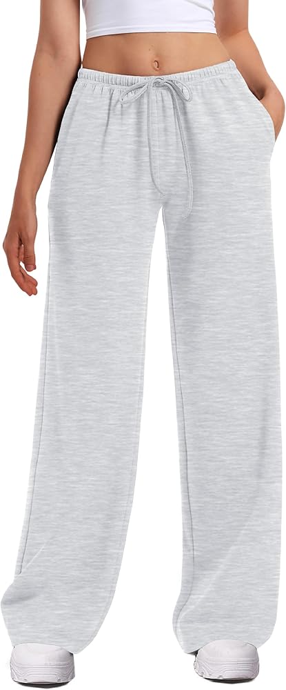 السمات: سراويل رياضية نسائية واسعة الساق، سراويل رياضية منخفضة الارتفاع للنساء عصرية، سراويل خصر مرنة برباط للنساء مع جيبين، سراويل رياضية فضفاضة مفتوحة من الأسفل للسيدات، سراويل رياضية طويلة للسيدات بأرجل مستقيمة