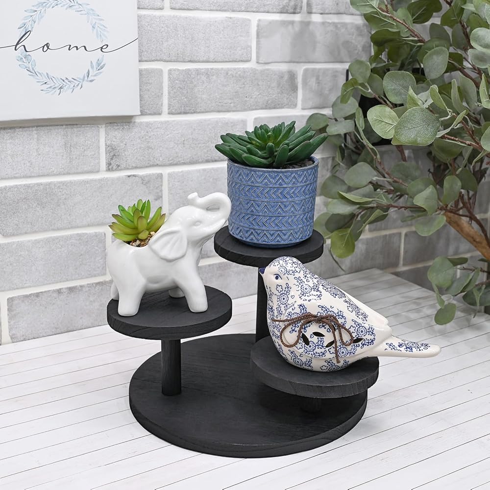 • 3-TIER NATURAL WOOD RISER DISPLAY STAND - This stunning 3-tier wooden riser set is thoughtfully crafted from lightweight yet robust materials, ensuring both beauty and strength. Its multi-level design not only optimizes space but also introduces a flair of elegance to any countertop. This adaptable set is perfect for displaying a diverse range of items, including jewelry, accessories, and collectibles, making it an excellent choice for elevating home décor and adding a chic touch to special occasions.