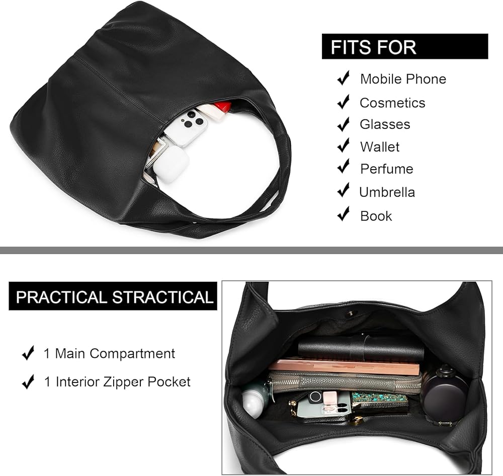【MATERIAL】This hobo bags are Made of premium vegan leather and polyester lining. No animals were harmed and good for the environment. Besides, designed with custom gold hardware that make the shoulder purses more luxury, generous and elegant.