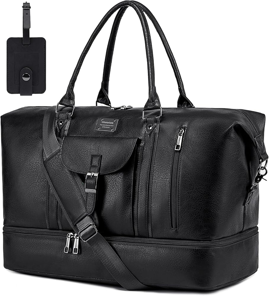 حقيبة جلدية لعطلة نهاية الأسبوع للرجال والنساء مع حجرة للأحذية: تحتوي حقيبة السفر الجلدية هذه على جيب منفصل بسحاب في الأسفل، حتى تتمكن من وضع حذائك أو ملابسك المتسخة بعيدًا عن ملابسك النظيفة. مفيد جدًا ويحافظ على نظافة الجزء العلوي. مع فتحتين للتهوية، لن تصبح الأحذية ذات رائحة كريهة أو تجعل حقيبة السفر الخاصة بك في عطلة نهاية الأسبوع ذات رائحة كريهة. يمكنك أيضًا وضع أي شيء آخر تريد الاحتفاظ به منفصلاً عن بقية متعلقاتك، وهو مفيد جدًا وموفر للمساحة