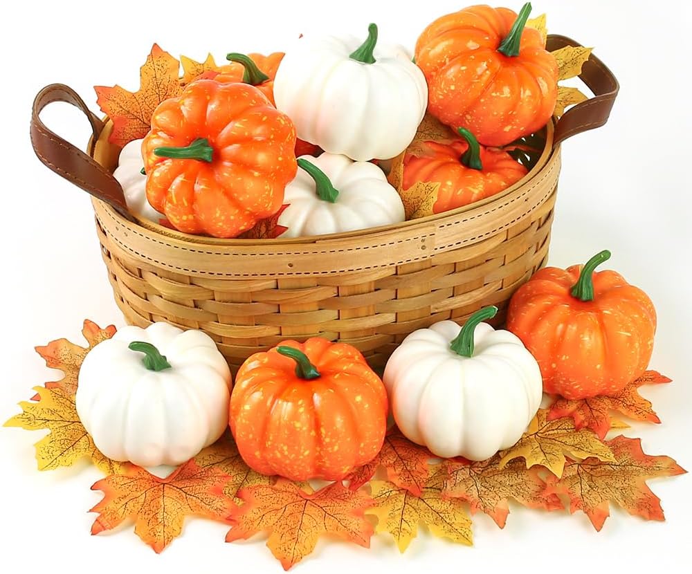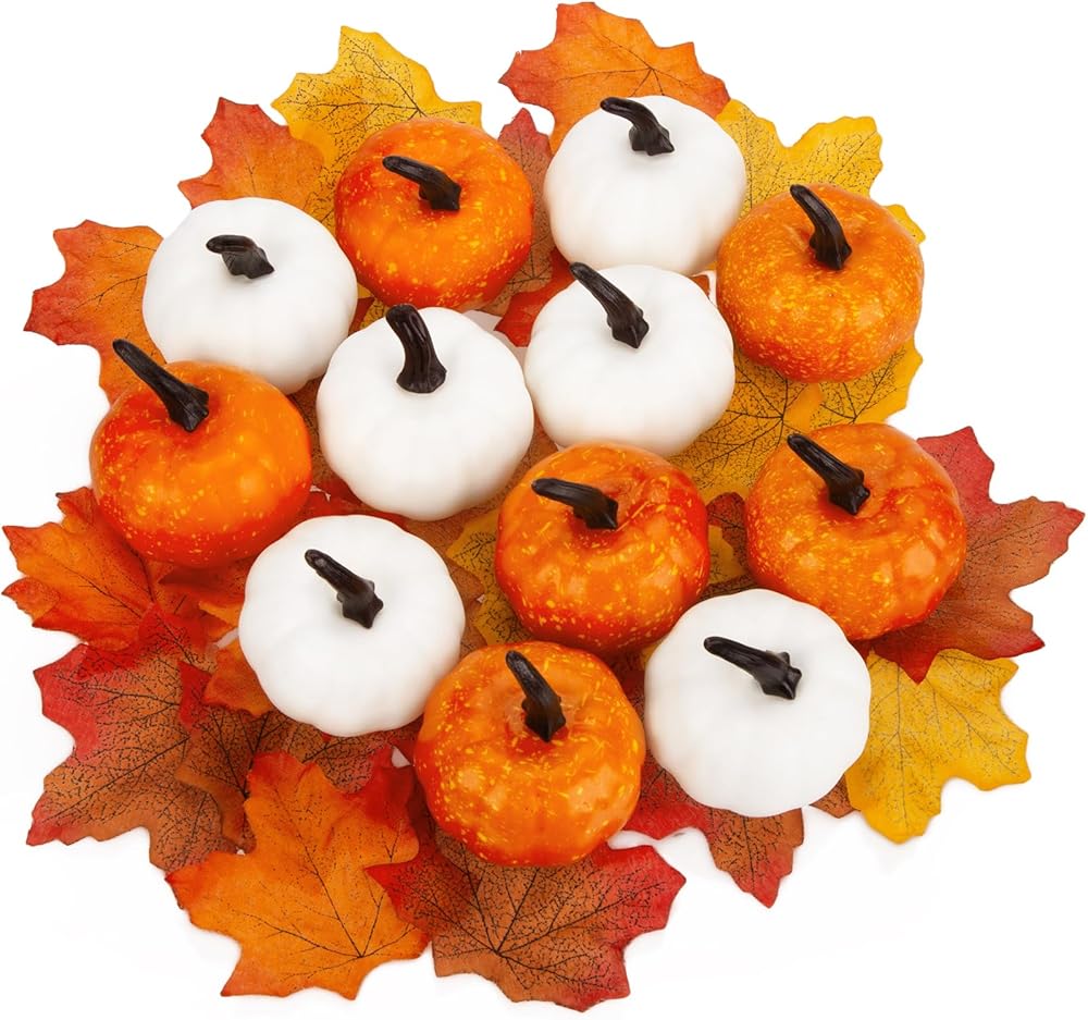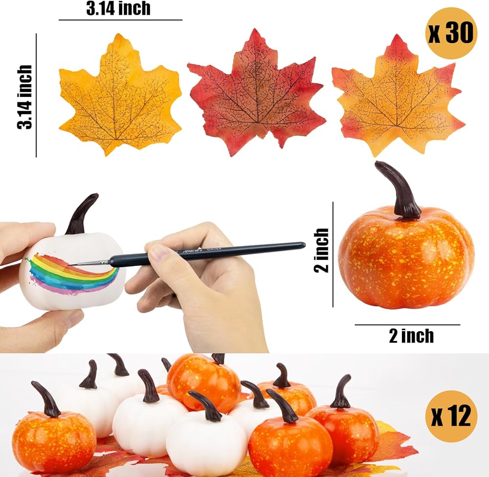 جودة فاخرة - جميع القرع الصغيرة لدينا مصنوعة من إسفنج عالي الجودة، وغير سام وعديم الرائحة، مع خطوط وبقع واقعية، ونابضة بالحياة ومظهر حقيقي؛ أوراق القيقب مصنوعة من الحرير، متينة وعالية القوة، ولا تسبب بهتان اللون أو تساقطه
