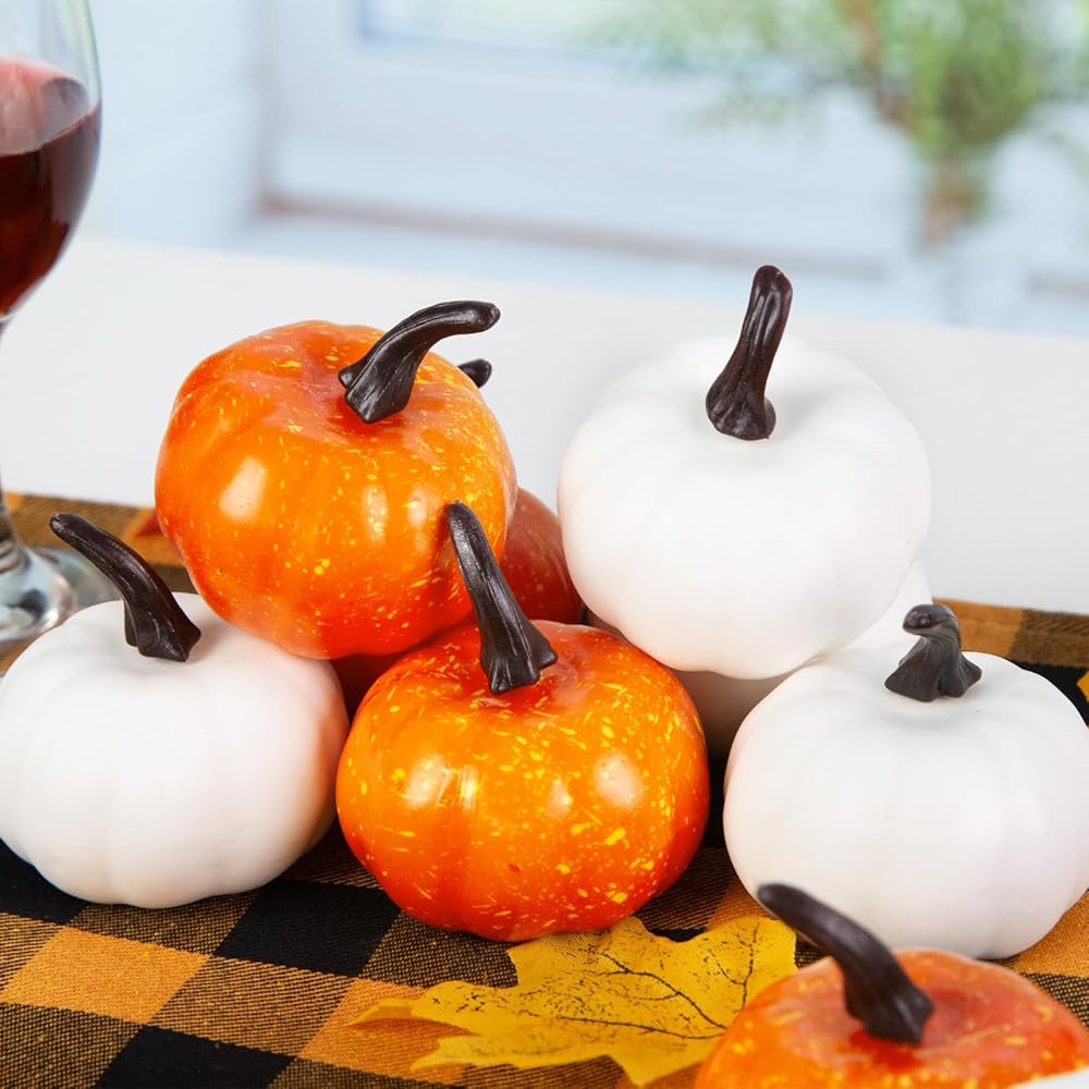 استخدامات واسعة - تعتبر اليقطين الصغيرة باللونين الأبيض والبرتقالي مثالية للهالوين وعيد الشكر، كما أنها مناسبة كديكور منزلي، أو قطعة مركزية لطاولة العشاء، أو إكليل من الزهور، إلخ.