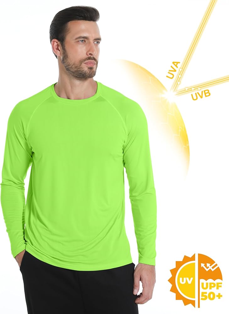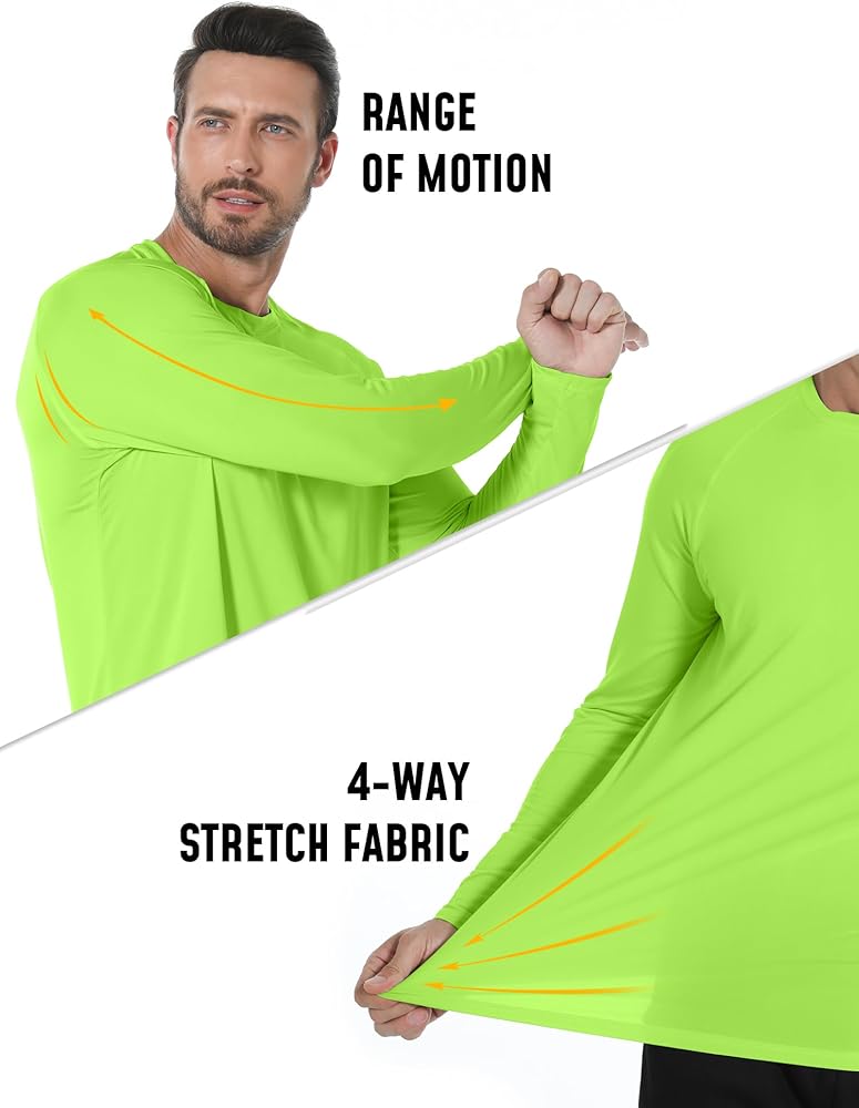 قمصان طويلة الأكمام للرجال بعامل حماية من أشعة الشمس 50+ - تستخدم قمصاننا الرجالية نسيجًا واقيًا من الشمس بعامل حماية من الشمس 50+، وهو خيار رائع لبشرتك من الشمس أثناء ممارسة الأنشطة الخارجية والمائية مثل الجري أو المشي لمسافات طويلة أو السباحة أو صيد الأسماك أو التدريب.