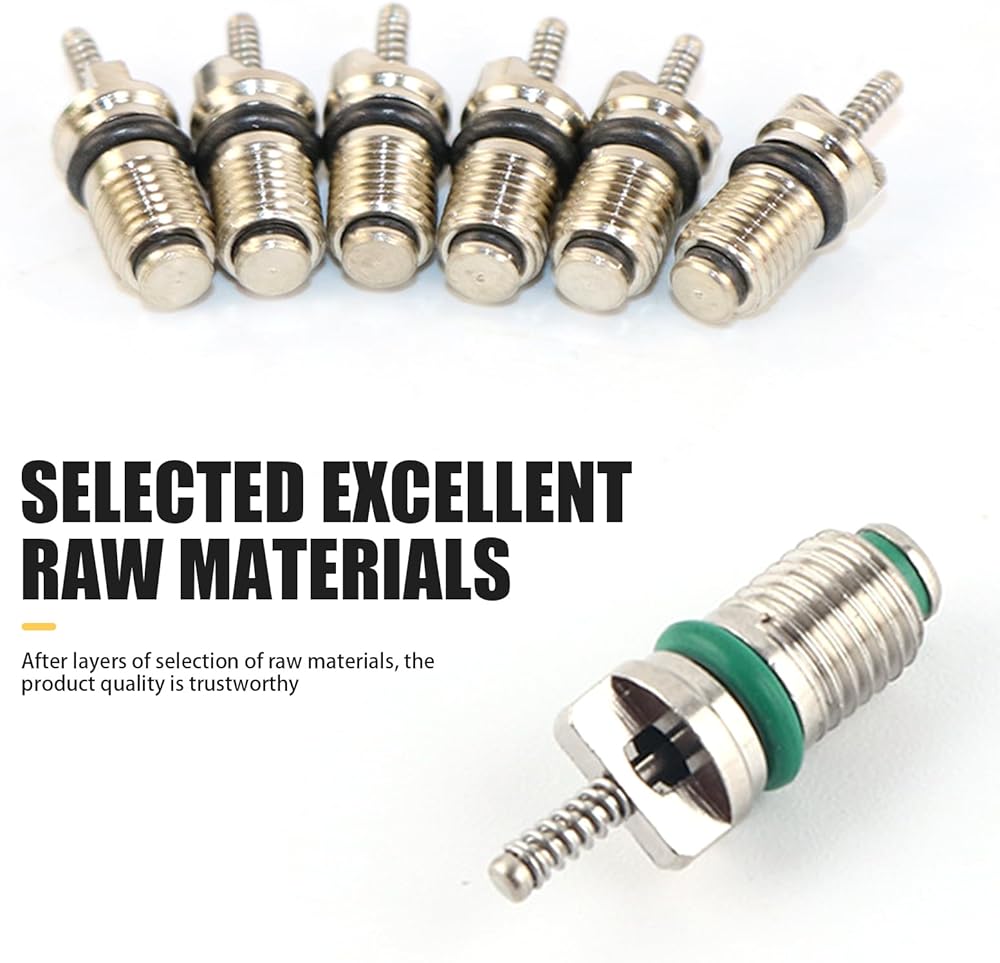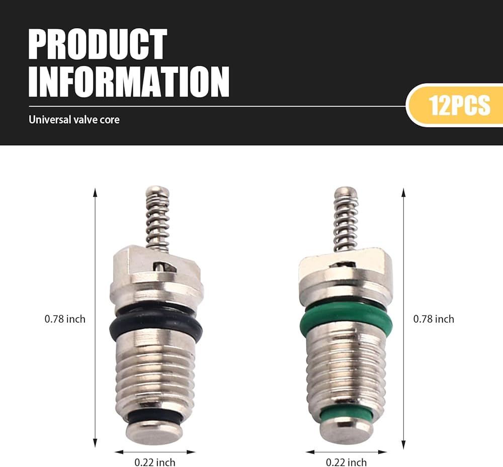 Product Details: The package includes 6 air conditioning R134a valve cores, with an overall size of 0.22 " x 0.78 ", which is compatible with the R134a refrigerant system and suitable for most cars, trucks, etc. Sufficient quantity to meet your use and replacement needs.