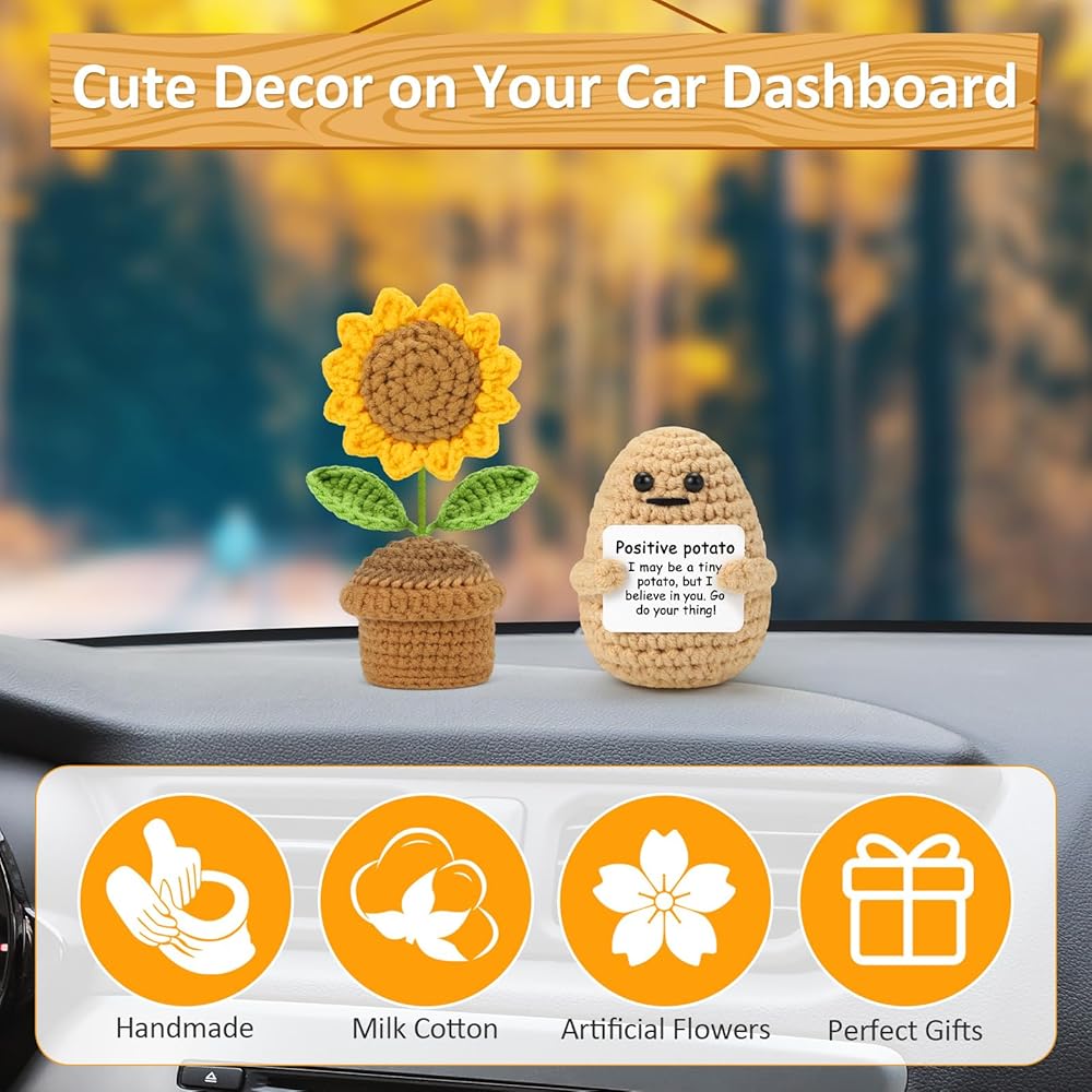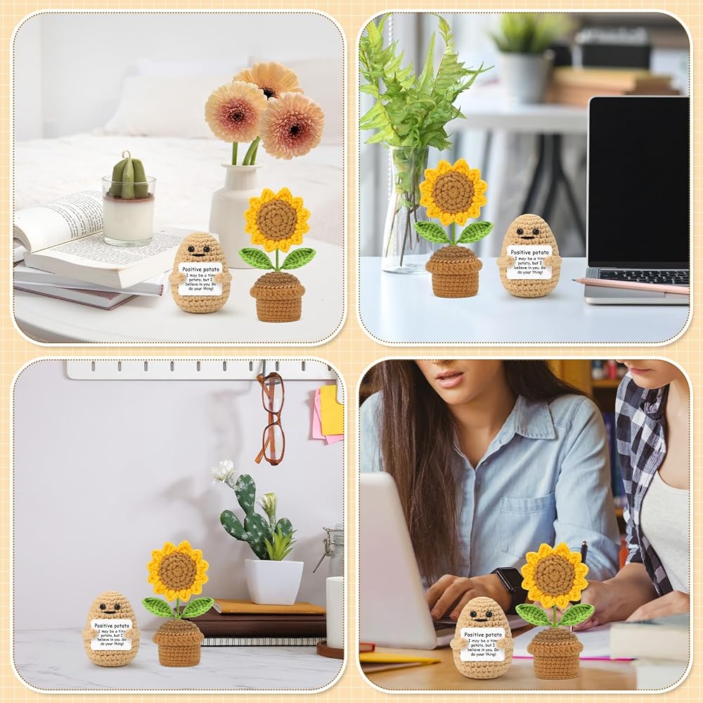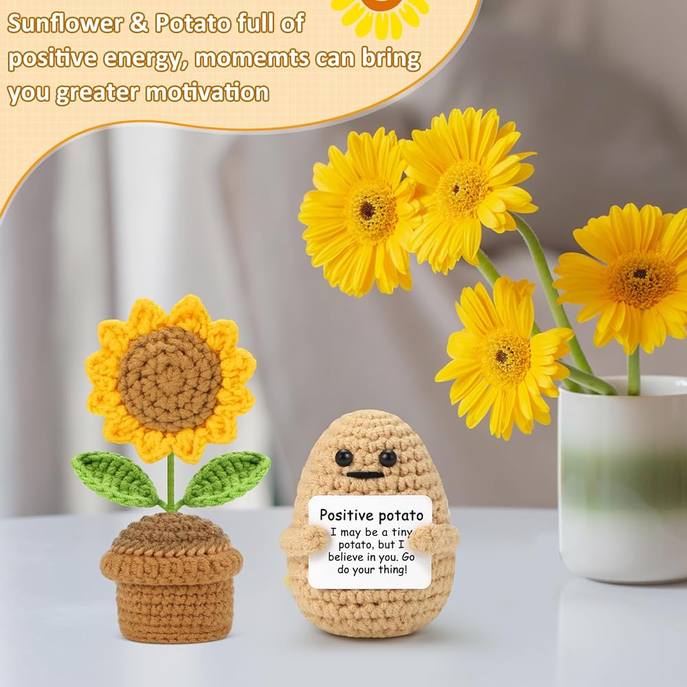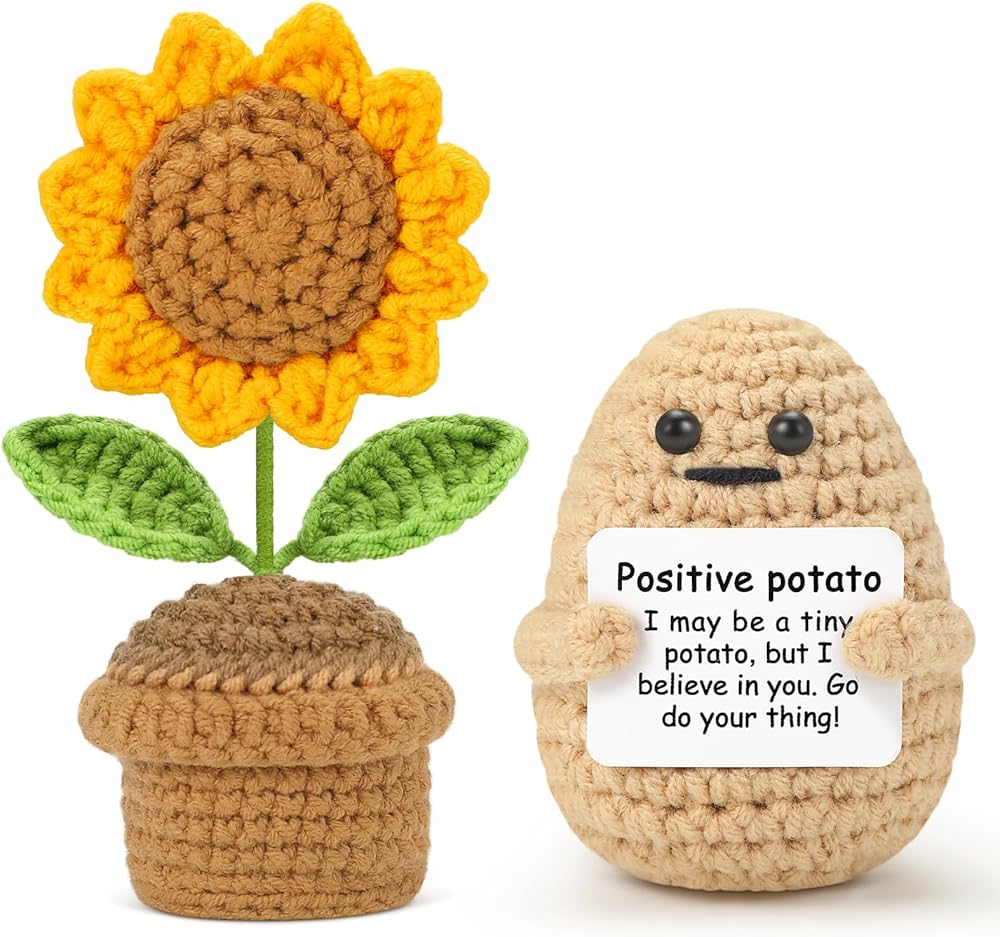 زهور الكروشيه الإبداعية: تضفي الابتسامات والهتافات على يومها مع هذه البطاطس الإيجابية وعباد الشمس المصنوعة يدويًا. هذه هدية مضحكة للنساء ترمز إلى الإيجابية والسعادة، كما أنها مثالية لغرفة النوم وديكور المكتب