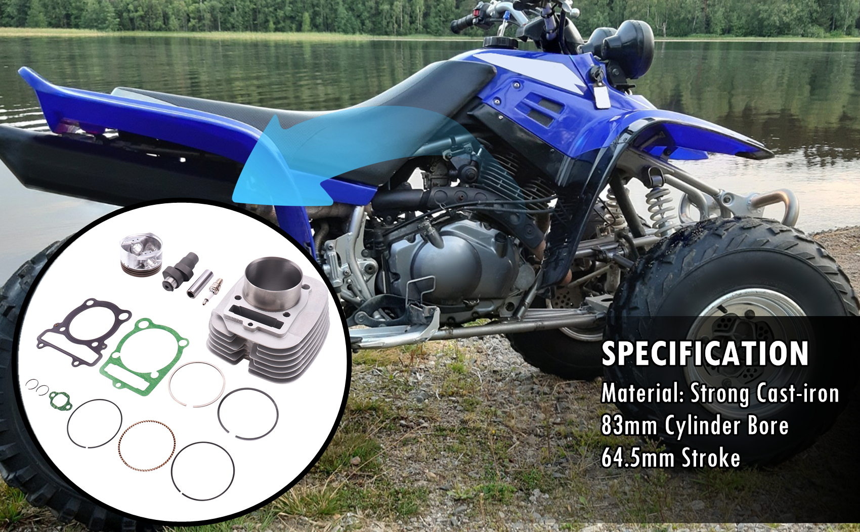 طقم مكبس اسطواني 83 مم مع حشية مناسب لياماها بيج بير 350 1987-1999 مناسب لياماها غريزلي 350 2007-2014 مناسب لياماها رابتور 350 2004-2013 استبدال 1YW-11631-01-Y0