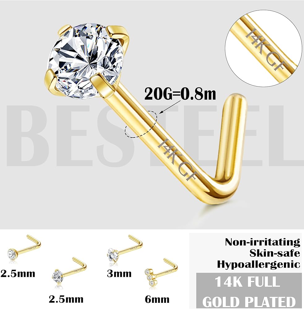 • 14K Gold Filled: Nose piercing jewelry Made of 14K Gold filled surgical grade 316L Stainless Steel and AAAAA+Cubic Zirconia. Hypoallergenic, durable, getting away from the agony of skin allergy