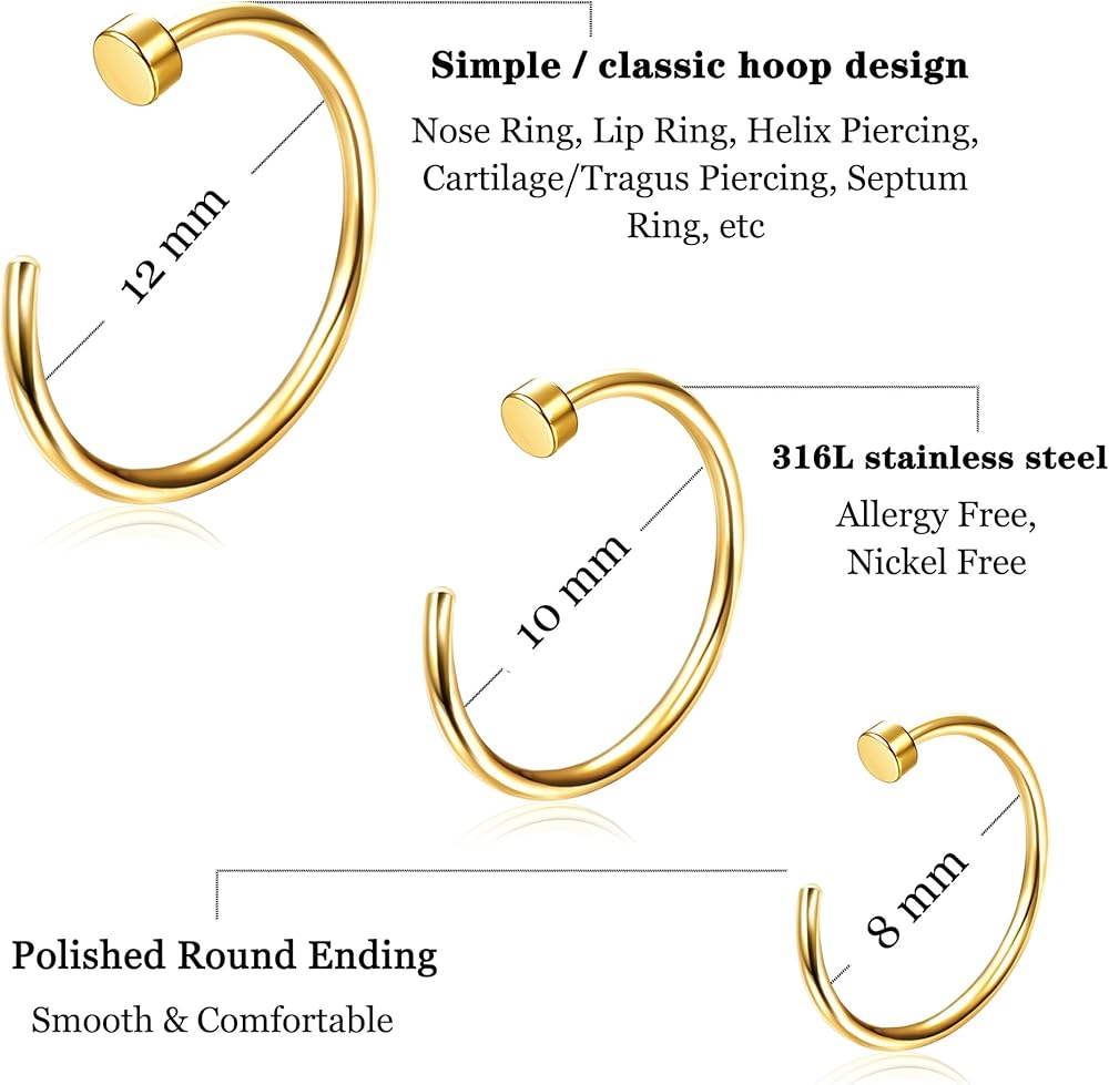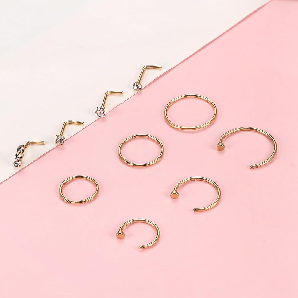 • GREAT VALUE NOSE RINGS SET: One order including 10pcs nose piercing:6 nose rings and 4 nose studs. Nose rings studs can be used as lip rings,helix piercing,tragus piercing jewelry and more.Nose piercings can give you multiple wearing choices as you like