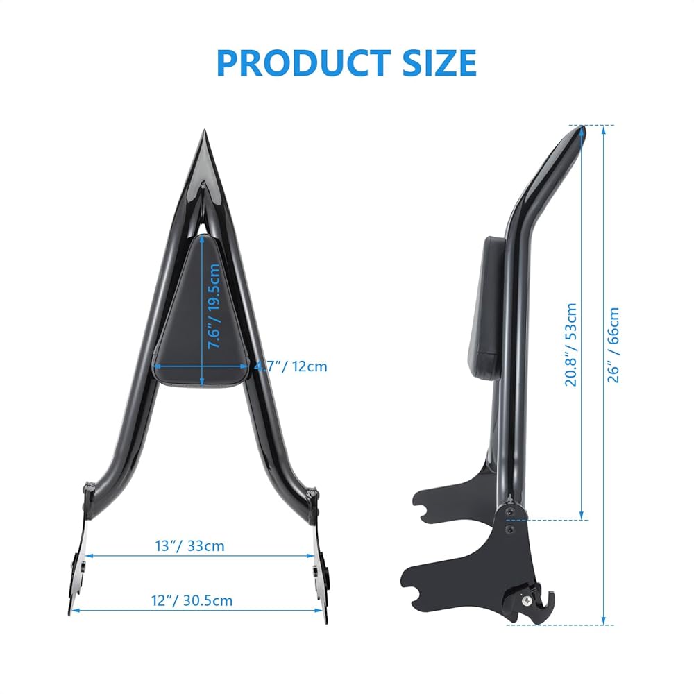 مسند ظهر للركاب قابل للفصل لـ Harley Touring، ارتفاع 26 بوصة، إطلاق سريع، متوافق مع Harley Touring Road King Electra Glide Street Glide FLHR FLHX FLHT FLTR 1997-2008 (أسود)