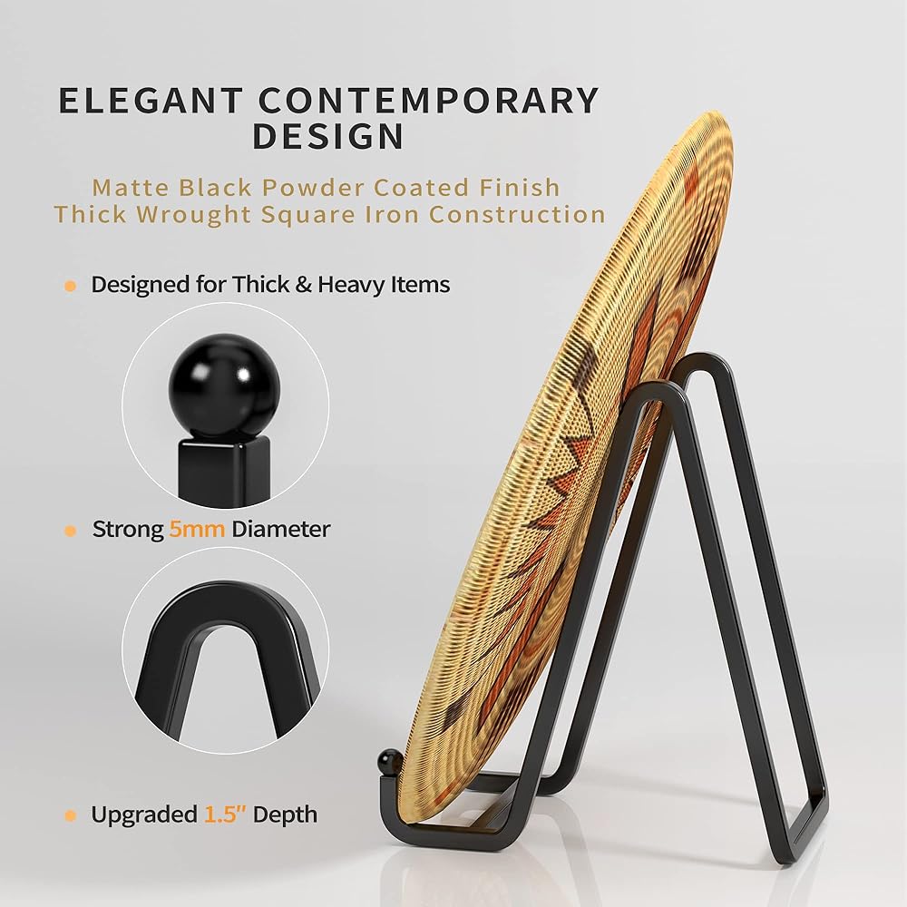 القوة والمتانة: - بفضل الأسلاك المربعة المعدنية السميكة عالية الجودة وبنية الحديد المطاوع، يمكن لحوامل عرض الألواح هذه أن تحمل مجموعة من العناصر بقوة. من لوحات مقاس 10 إلى 18 بوصة، وألواح التقطيع، والبلاط، واللوحات، والأطباق الكبيرة، وسجلات الفينيل، والتقويمات، والقماش، والدبلومات، وكتب الطبخ، والمزيد، تم تصميم هذه الحوامل لتدوم طويلاً.