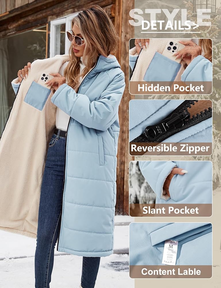 • 【سترة منتفخة دافئة طويلة للسيدات】: تتميز السترات الشتوية النسائية الطويلة بسحاب كامل وتصميم غطاء رأس كبير، مما يوفر عزلاً دافئًا ومقاومًا للرياح بشكل ممتاز. الجيوب الكبيرة على جانبي المعطف النسائي مثالية لتخزين المفاتيح والبطاقات والهواتف والمحافظ والمزيد. تم تصميم الجانب الصوفي من هذا المعطف الطويل المنتفخ ذو القلنسوة خصيصًا بجيوب مربعة، والتي يمكن استخدامها كجيوب مخفية عند ارتدائها في الخارج، عملية وجميلة.