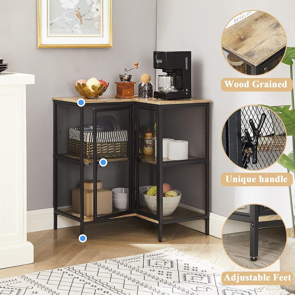[رف تخزين زاوية متعدد الوظائف] - يمكنك استخدام رف خزانة الزاوية المكون من 3 طبقات كحامل تلفزيون، ورف نباتي، وخزانة مطبخ وما إلى ذلك؛ يمكن لخزانة الزاوية ذات الأبواب أن تناسب أي زاوية في غرفة المعيشة وغرفة النوم والمطبخ والمكتب المنزلي!