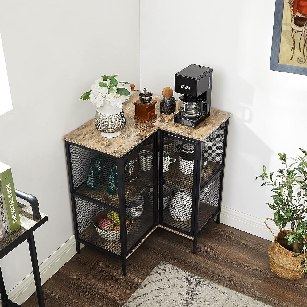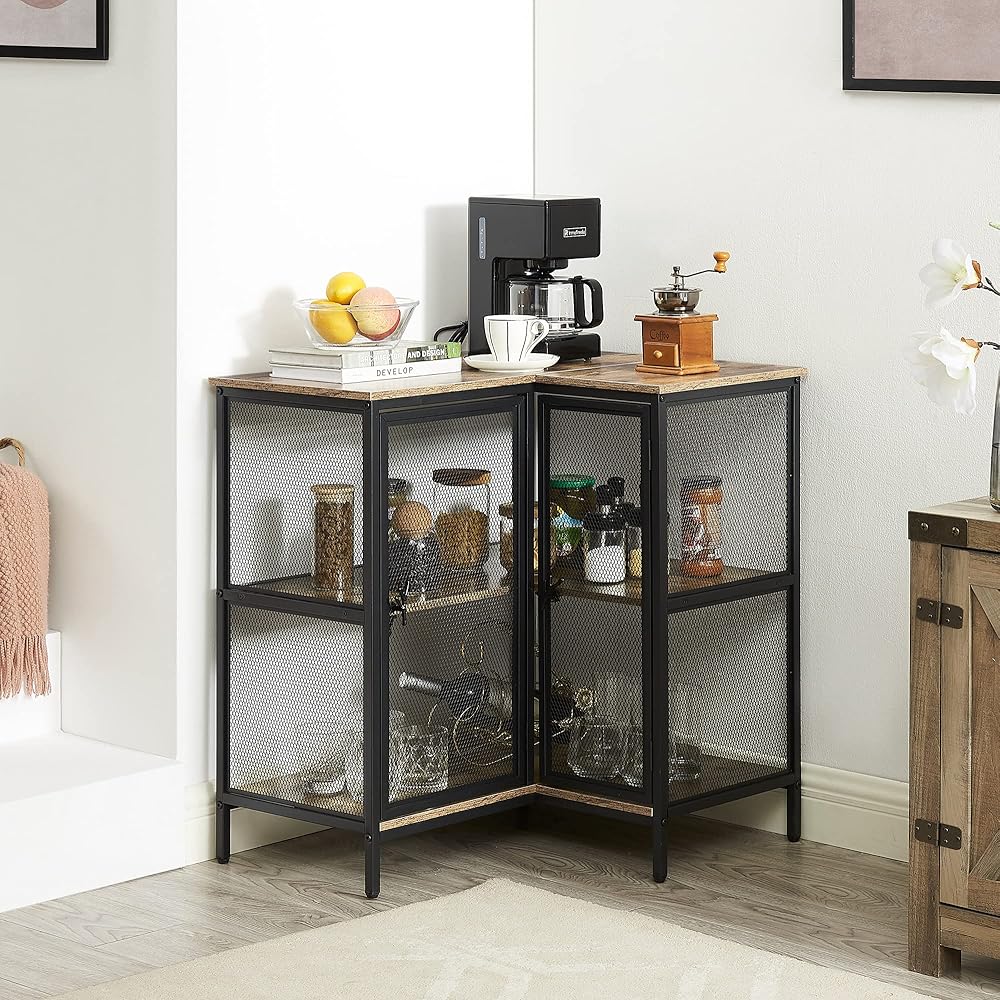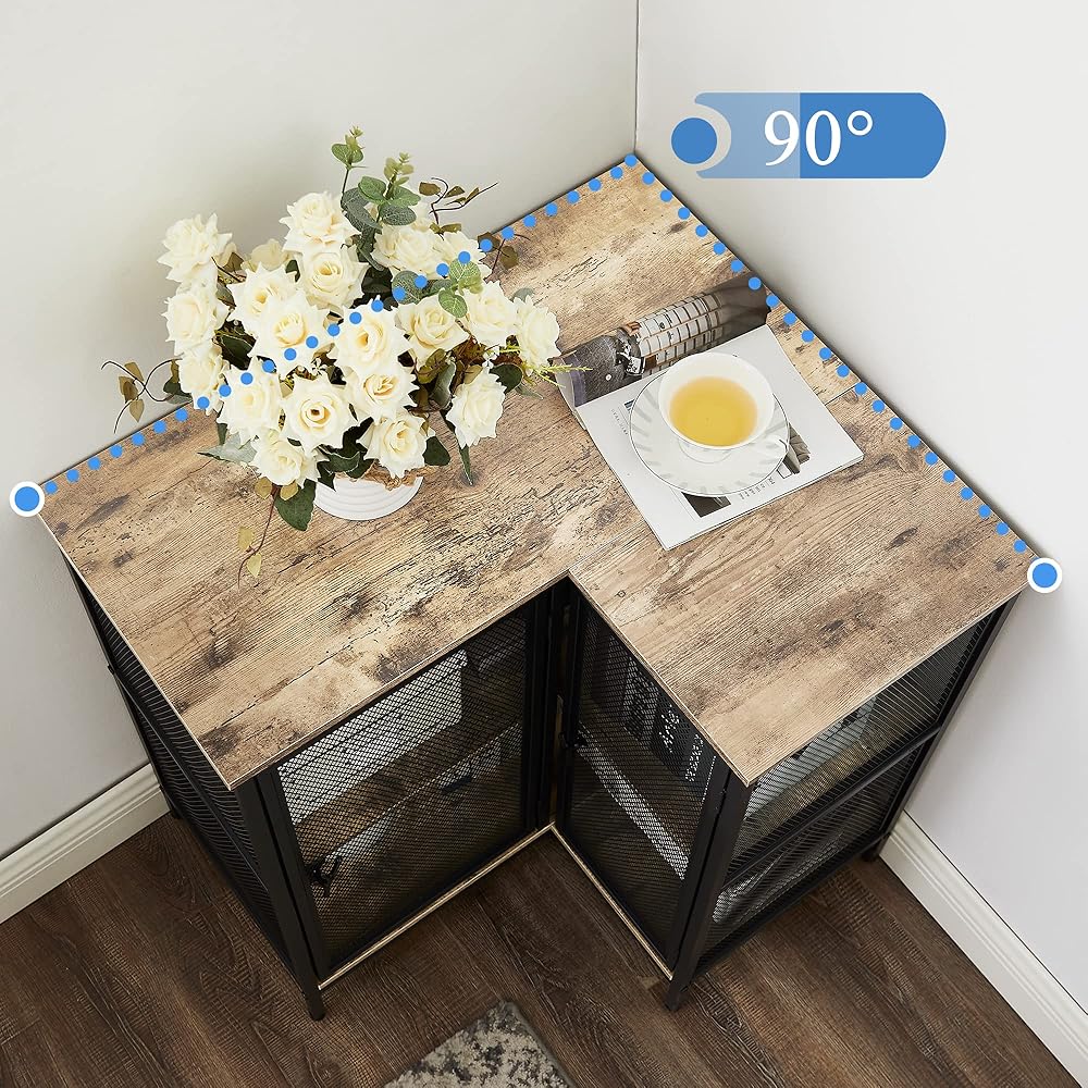 [قوي ومستقر] - خزانة الزاوية هذه ذات الأبواب مصنوعة من إطار معدني وخشب هندسي موثوق؛ يتميز الإطار المعدني بتقنية الرش المقاومة للماء والمتينة، مما يضمن ثبات طاولة الزاوية والاستخدام لفترة طويلة.