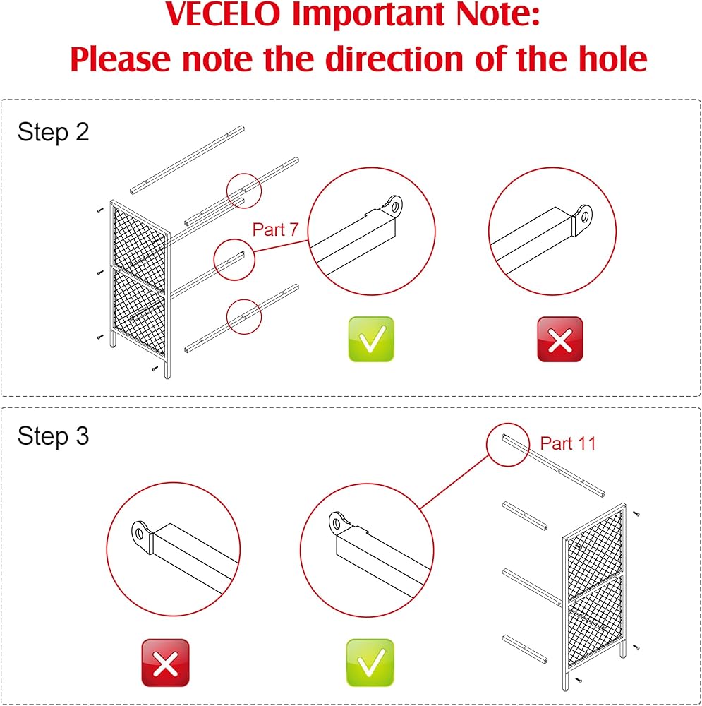 [ملاحظة مهمة جدًا] - يرجى ملاحظة اتجاه الفتحة؛ إذا قمت بتجميع الجزء 7 والجزء 11 بشكل خاطئ، فمن المستحيل إغلاق الباب. إذا كان لديك أي مشكلة مع رف الزاوية هذا، فيرجى الاتصال بنا!