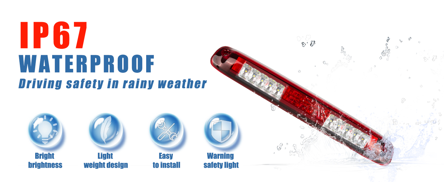 • مقدمة: يمكن أن يكون ضوء الفرامل الثالث في المنتصف مع وسادة إسفنجية مقاومًا للماء ويمنع الغبار والطين والثلج والأمطار الغزيرة. أداء متين وموثوق وإضاءة أكثر سطوعًا واستهلاك أقل للطاقة