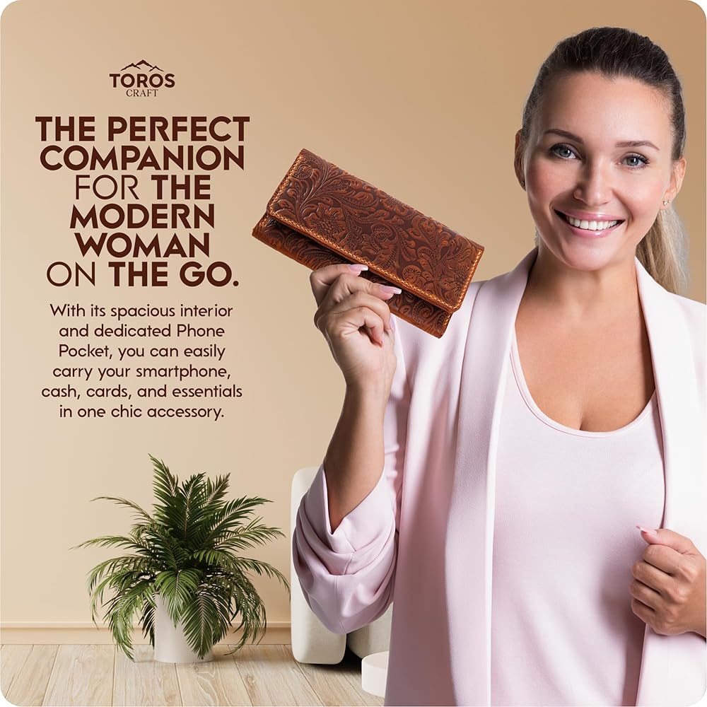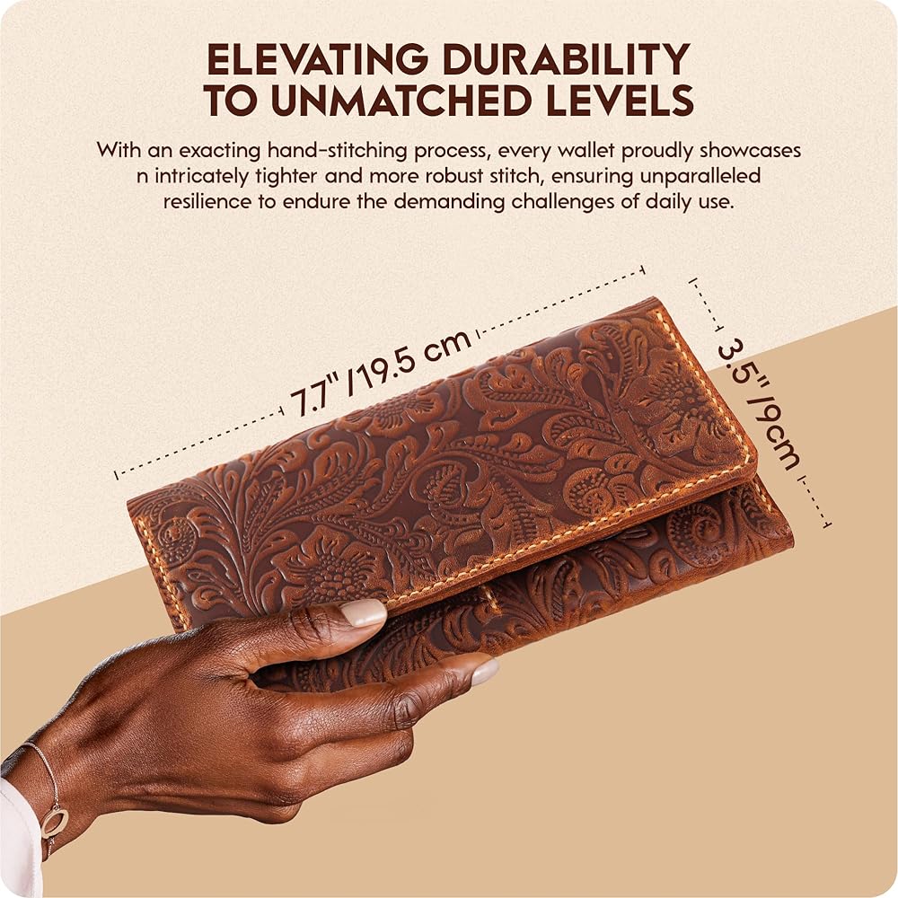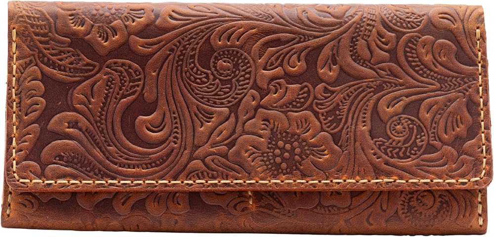 HANDMADE: No machine has been used at any stage of production, and all of our products are cut by hand and sewn by hand using traditional methods with double needles. Western wallets for women It is produced with 100% handwork from genuine tooled leather of medium thickness, absorbent and breathing.