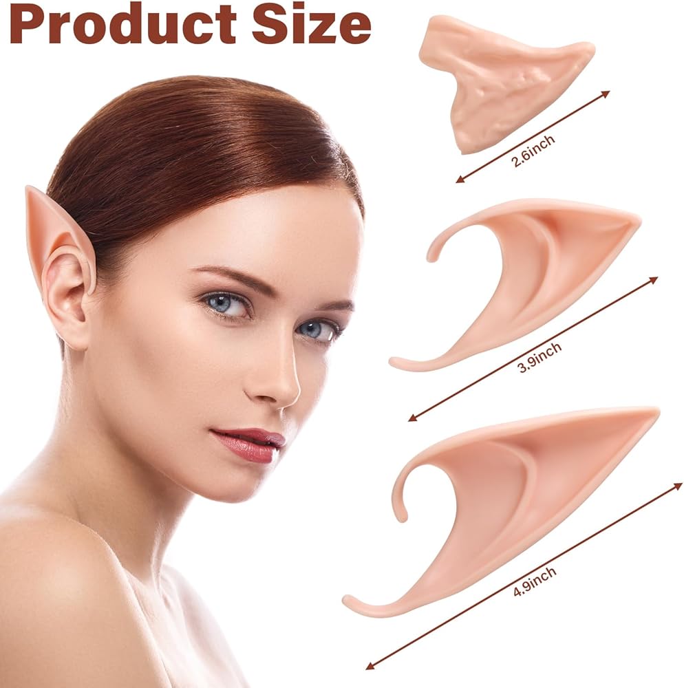 3 ASSORTED SIZES: The long elf ear is in length of 4.9 inches/ 12.5 cm; The short elf ear is in length of 3.9 inches/ 10 cm; The half elf ear in length of 2.6 inches/ 6.5 cm. Soft elf ears can be dressed up as elves, fairies, pixies and more, suitable for everyone who looks for beauty