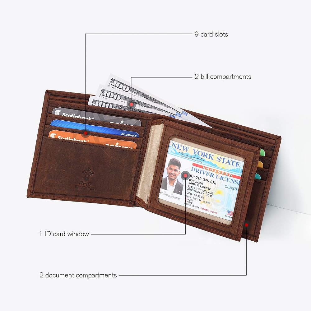 حماية آمنة RFID: تشتمل هذه المحفظة الجلدية للرجال على تقنية حجب RFID لتأمين معلوماتك الشخصية والمالية من عمليات المسح غير المصرح بها، مما يجعلها ملحقًا أساسيًا للعصر الرقمي الحالي.