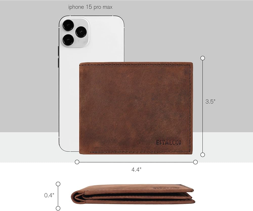 جلد عالي الجودة: مصنوعة من جلد متين، هذه المحفظة ثنائية الطي للرجال تجمع بين المظهر الأنيق والأداء الموثوق. مثالي للاستخدام اليومي، بمقاس 4.4 بوصة × 3.5 بوصة × 0.4 بوصة، ويمكن وضعه بسهولة في أي جيب.