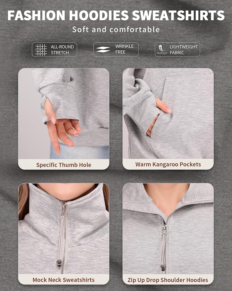 تطابق رائع: أزياء خريفية مريحة وأنيقة لخزانة ملابسك، يمكن أن تكون السترات ذات القلنسوة ذات السحاب الربع فكرة جيدة لتتماشى مع سراويل اليوغا، والجينز، والركض، والسراويل الرياضية، والقمصان الضيقة، والقمصان السفلية، والقمصان بدون أكمام، والقمصان القصيرة، والسترات، وما إلى ذلك، ليست سيئة لكل من الاسترخاء والتدريبات الخفيفة