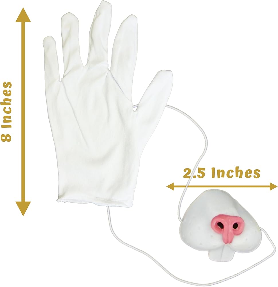 ما تحصل عليه - يشتمل على قبعة علوية بأذني أرنب، وقفازات بيضاء، وأنف أرنب على الشريط، وقلادة ساعة كبيرة الحجم.