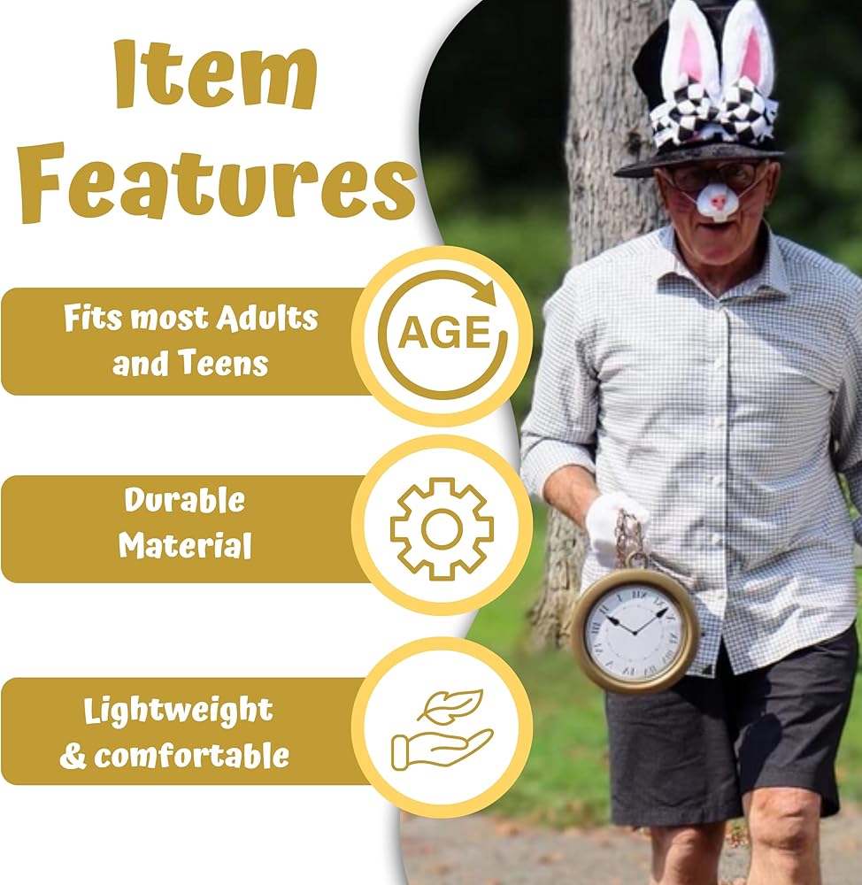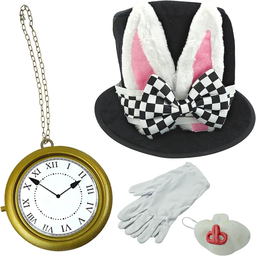 مجموعة الأزياء - مجموعة إكسسوارات زي الأرنب الأبيض هذه مناسبة لأي شخص يرتدي زي الأرنب الأبيض في أليس في بلاد العجائب. مجموعة زي الأرنب رائعة لحفلات الشاي أو الهالوين، زي الأرنب للنساء والرجال والمراهقات والأولاد.