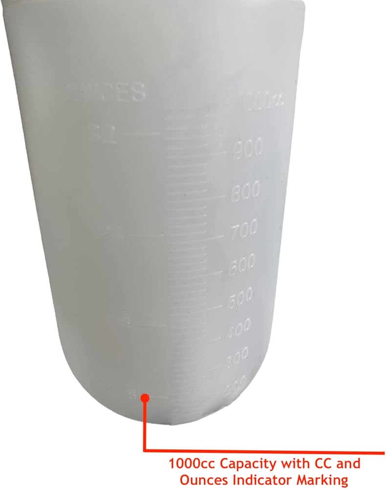 ✅ زجاجة مصنوعة بخبرة تحمل ما يصل إلى 1000 سم مكعب من السوائل - هذا الخزان المساعد المحمول يحمل ما يصل إلى 1000 سم مكعب من السوائل أو سعة 1 لتر. مصنوعة من زجاجة بلاستيكية سميكة عالية الجودة ومميزة بمؤشرات قياس CC والأوقية.