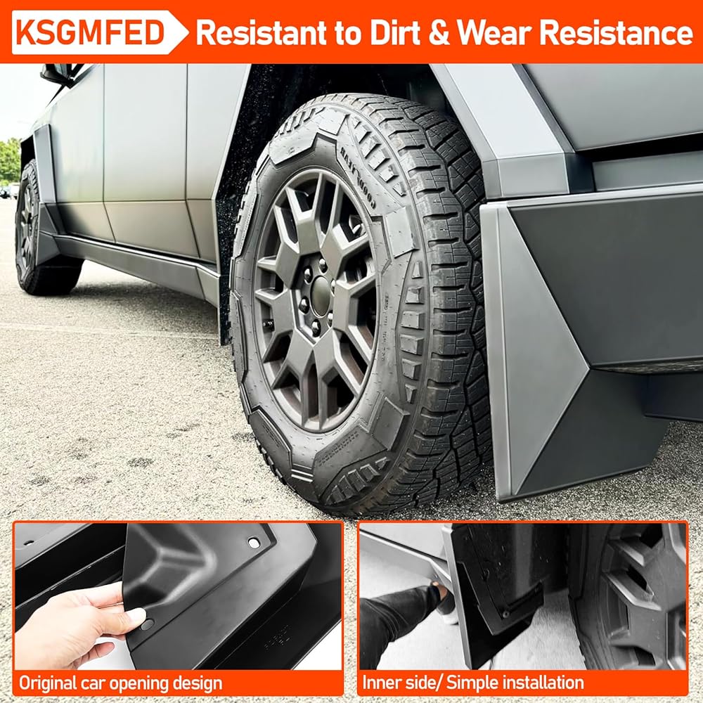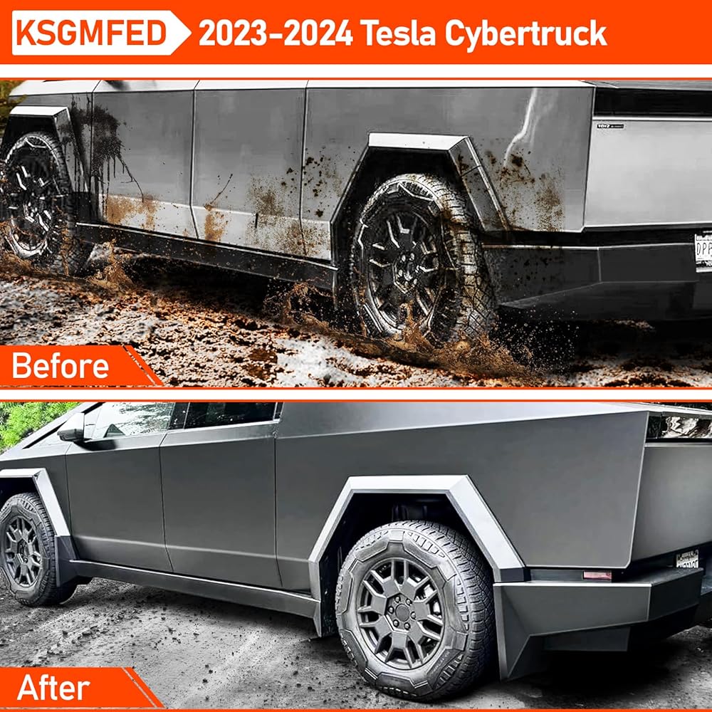 • ملاءمة مثالية لسيارة Tesla Cybertruck الخاصة بك: تم تصميم أغطية الطين الخاصة بنا لحماية سيارة Tesla Cybertruck 2023-2024+، مما يضمن بقاء جسم سيارتك خاليًا من التآكل والخدوش.