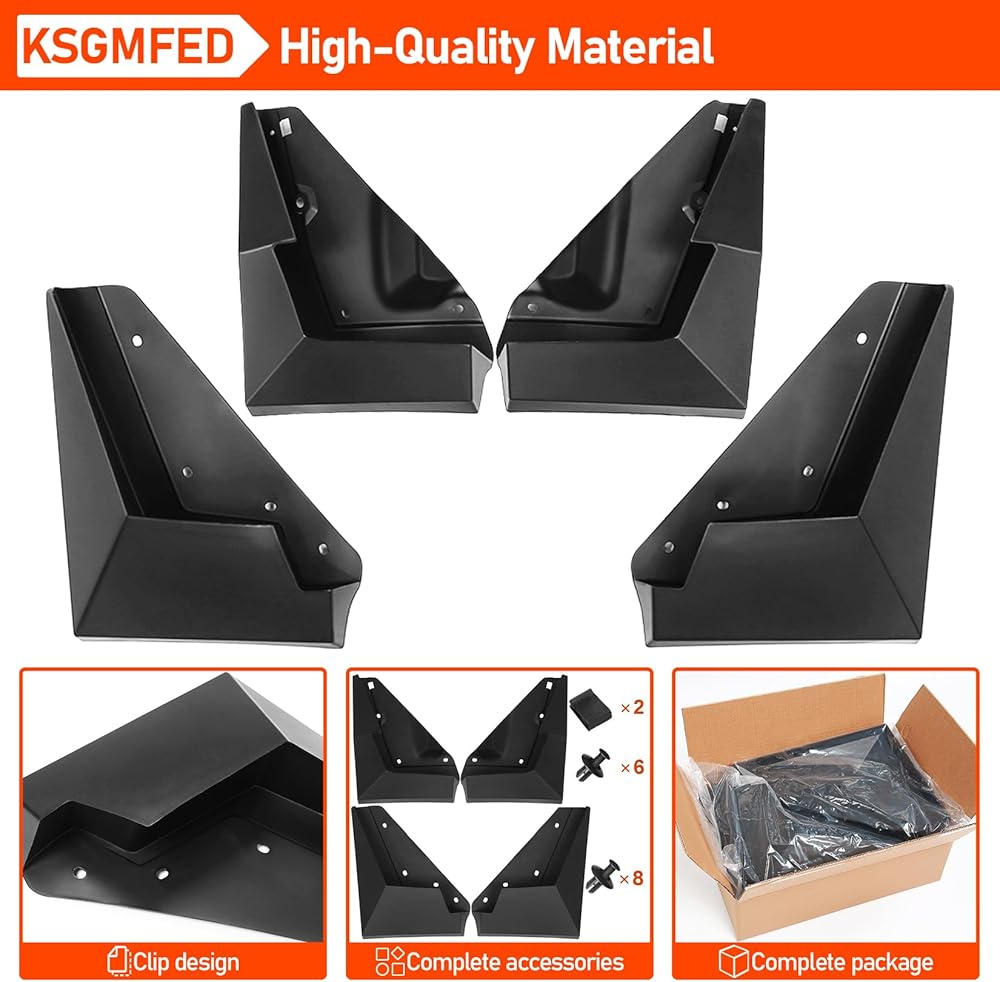 • مادة عالية الجودة: مصنوعة من مادة البولي بروبيلين المقاومة للصدمات، وقد صُممت أغطية الطين هذه لتدوم طويلاً. لقد تم حفرها مسبقًا لتناسب بشكل مباشر، مما يضمن ملاءمة مثالية لسيارة تيسلا سايبرتراك 2023 2024 الخاصة بك.