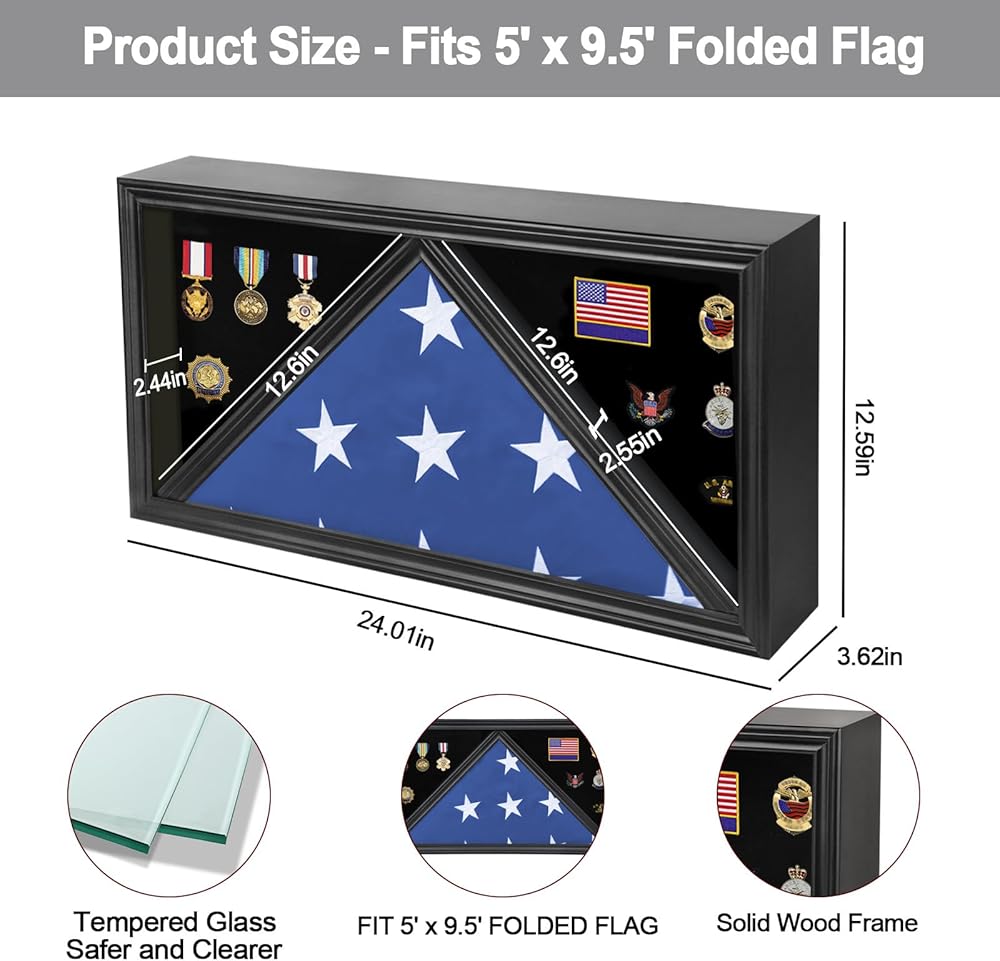 • هدية مثالية - حافظة عرض علم الدفن الكبيرة Sboitflmm مصنوعة من الخشب الصلب مع ألواح زجاجية مقواة لمزيد من الأمان ومقاومة الخدش لحماية كنوزك من الغبار؛ ألواح رغوية سميكة مغطاة بالمخمل الأسود. لا يحافظ إطار العلم هذا على العلم فحسب، بل يديم أيضًا شرف الجيش. إنها هدية مثالية لأي مناسبة مثل عيد المحاربين القدامى، ويوم الذكرى، وعيد الأب، وعيد الميلاد.