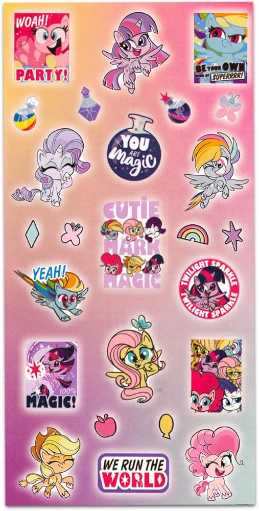 Officially licensed My Little Pony crossbody bag for girls also includes My Little Pony stickers, temporary tattoos, and a Luna and the Cloud Elves door hanger.