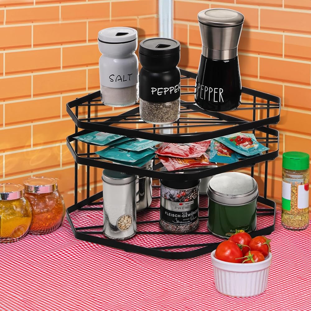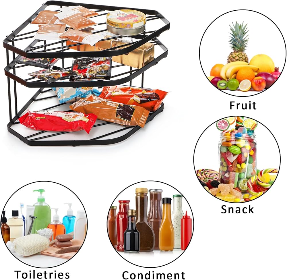 توفير المساحة: الطبقة على شكل مروحة والتصميم الخلفي ذو الزاوية اليمنى 90 درجة يجعل رف التخزين مثاليًا لخزائن المطبخ وأسطح العمل والخزائن وزوايا الحمام.