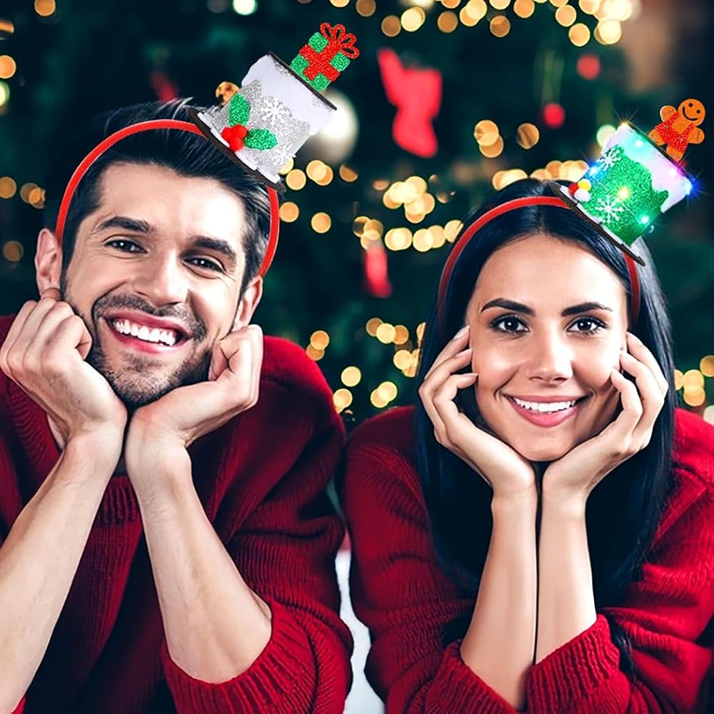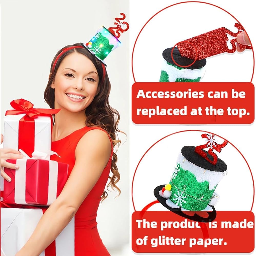 Led Christmas Hat Headband are fully instilled into Christmas elements:snowman,christmas tree,reindeer antlers,snowflake,etc.Great decorations for Christmas,will add more fun and leave a good memory in the happy Christmas festival.