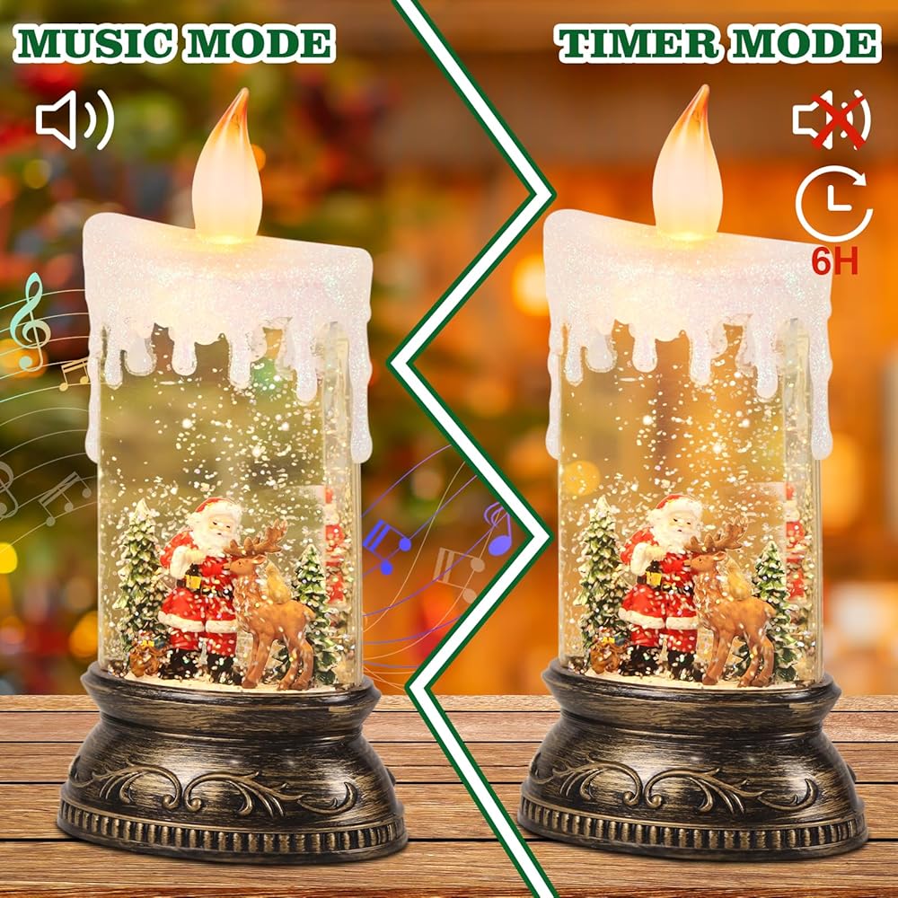 Musical Snow Globe Lantern with 6H Timer, Battery Operated & USB Powered Lighted Singing Snow Globe Candle Lamp Spinning Water Swirling Glitters Christmas Gift Holiday Decor-Santa Deer