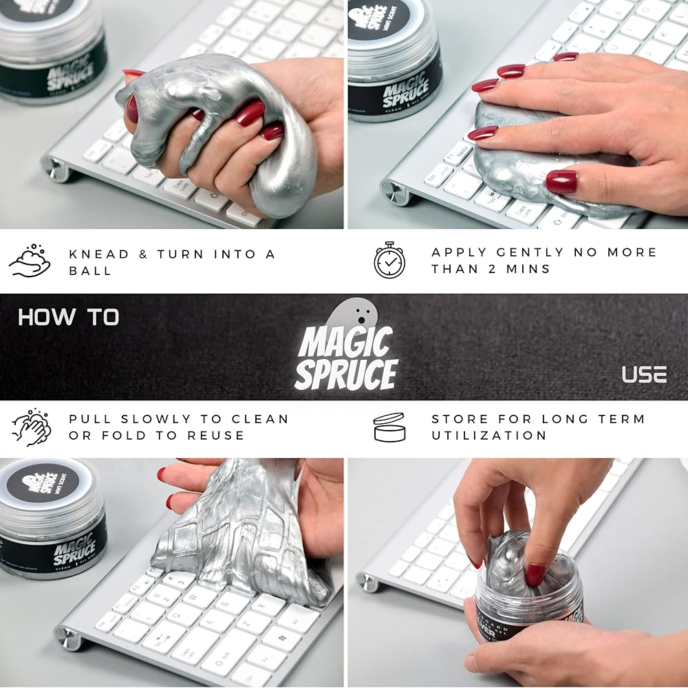 • متعدد الأغراض - سيساعدك جل التنظيف هذا على تنظيف الجزء الداخلي من سيارتك أو لوحة مفاتيح الكمبيوتر أو الكمبيوتر المحمول والعديد من الأجهزة الأخرى، وهو مثالي للتنظيف التفصيلي؛ يمكنها إزالة الغبار والبقع والفتات وحتى شعر الحيوانات الأليفة. استخدمه للأجهزة الإلكترونية، ولوحة أجهزة القياس في السيارة، وفتحات الهواء، ورفوف النوافذ المنزلية، والمفروشات والتفصيل.