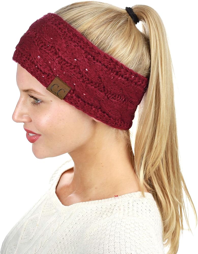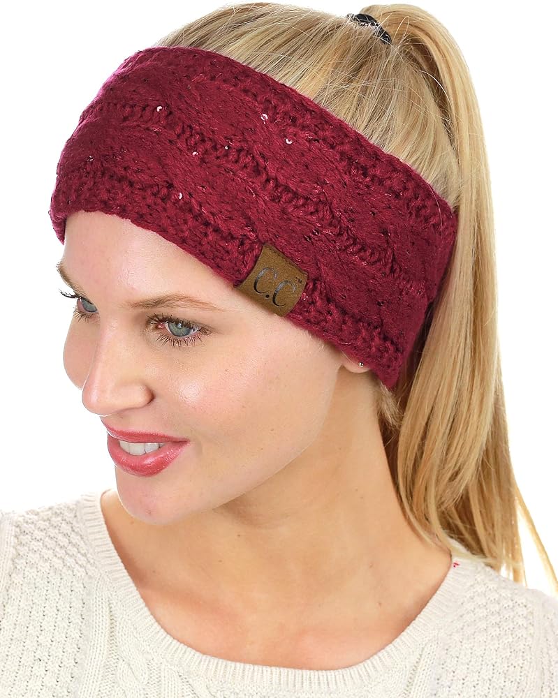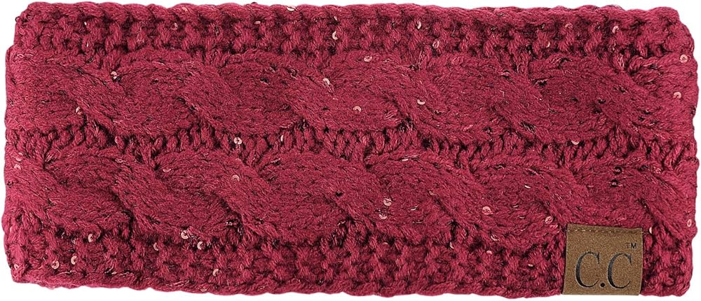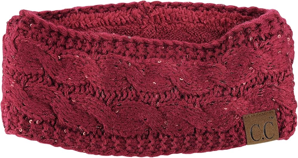 C.C سباركلي الترتر الشتاء الدافئة كابل متماسكة غامض مبطن عصابة رأس لتدفئة الأذن، بورجوندي
