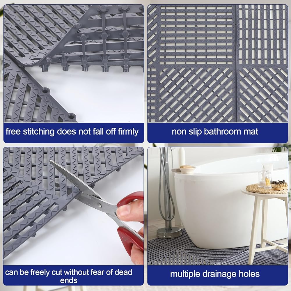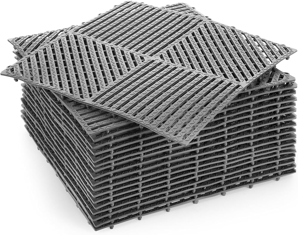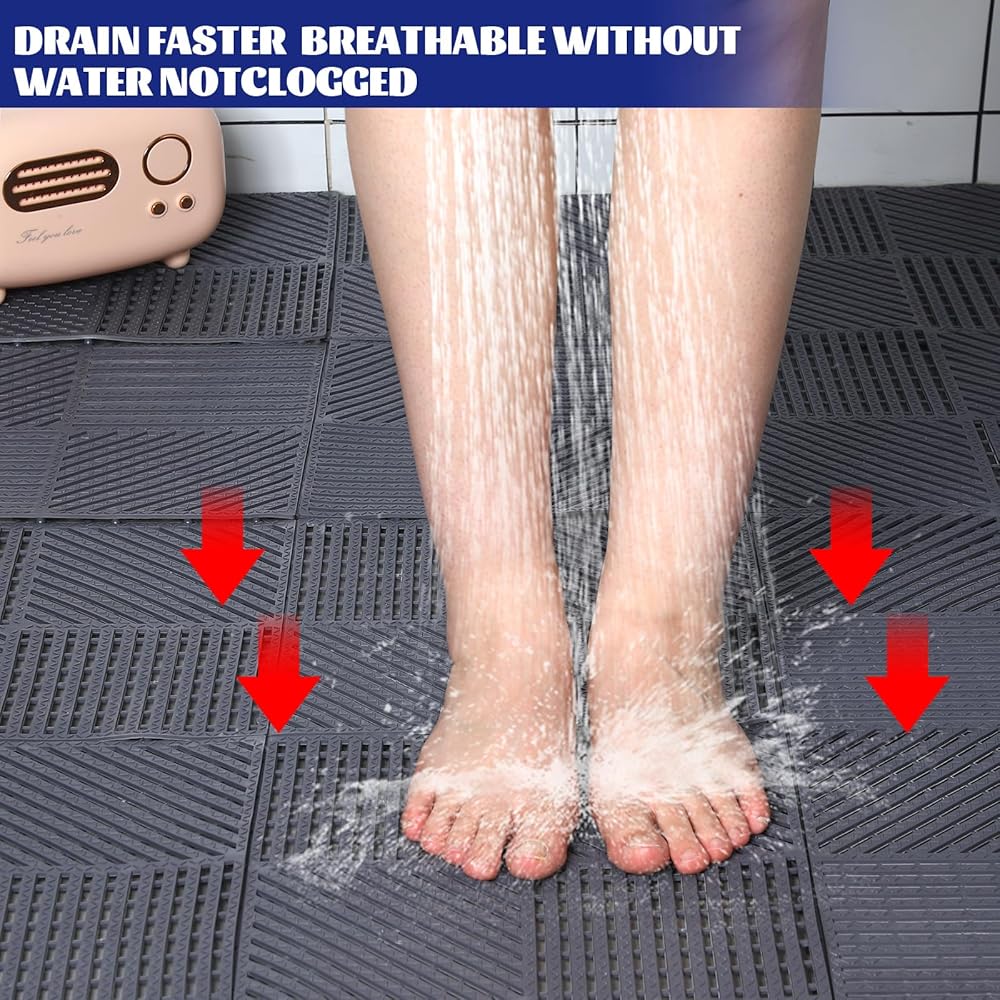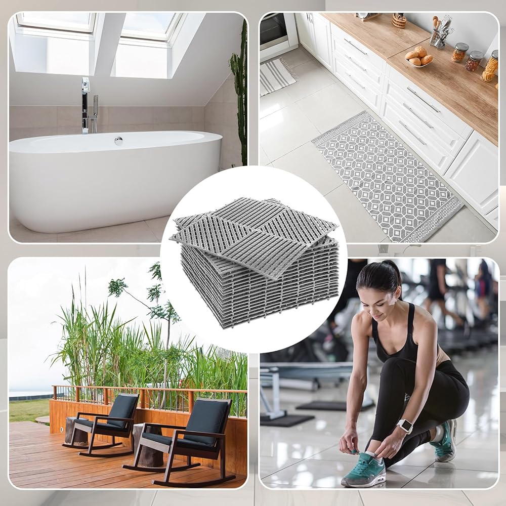 Wide Applications: the drainage mat interlocking is versatile and can be applied in a variety of settings; Whether you need to create a comfortable flooring in your home bathroom or want to drain your garage floor, these mats are suitable for a wide range of applications, such as pools, showers, spas, outdoors, camping, gyms, and where you need to keep them clean