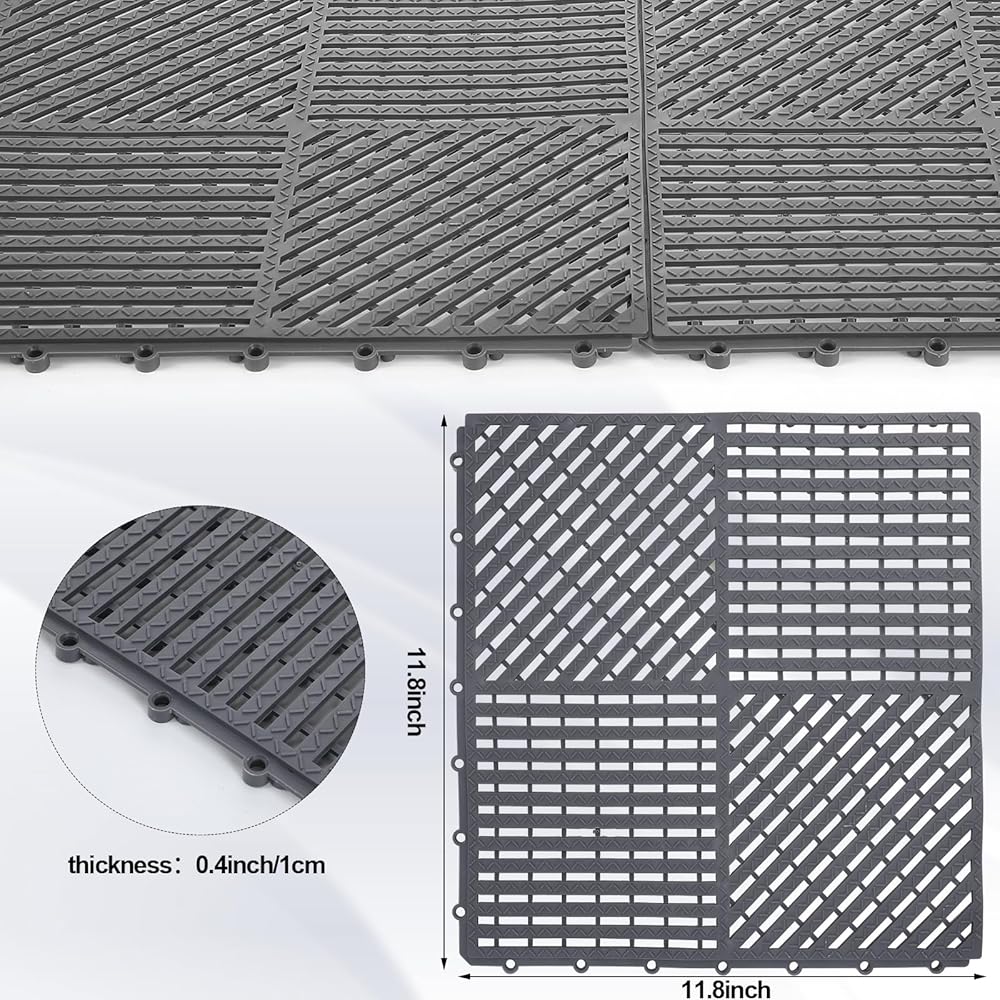 18 Pack Gray Floor Tiles with Drainage Holes: interlocking floor mat tiles come in packs of 18, providing ample coverage for the space you need; Each mat measures approximately 12 x 12 x 0.4 inches/ 30 x 30 x 1 cm, making sure you have enough mats to create a complete and safe flooring solution