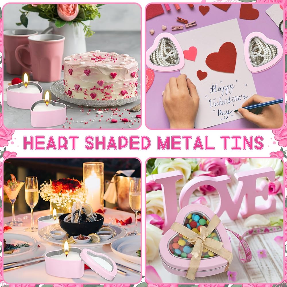 Suitable for Valentine Parties: enhance the festive feeling of your Valentine's Day parties with these heart shaped tins; Serve as romantic candle containers or gift boxes, our candle jars ensure that you celebrate love and warmth in style