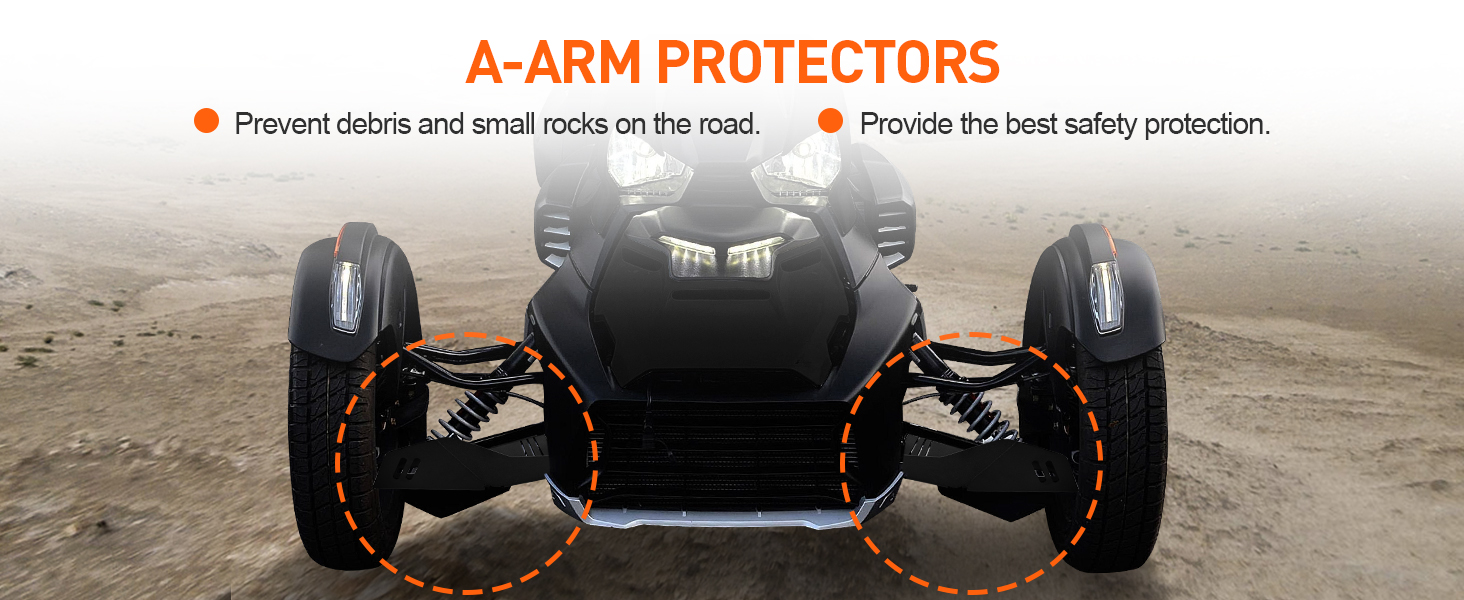 حماية السلامة: ستواجه الدراجات النارية حتمًا العديد من الحطام أو الحصى أثناء ركوب الدراجات، والتي يمكن أن تكون السبب في تلف الدراجة النارية، كما أن تركيب واقي الرذاذ الأمامي عالي القوة الخاص بنا يمكن أن يعزل هذه المشكلات ويحسن سلامة الركوب. يمنح الجزء الخارجي الأسود والنظيف بالكامل للواقي الأمامي A-Arm Splash Guard لـ Ryker الدراجة النارية مظهرًا مخصصًا أنيقًا كما لو كانت جزءًا من المصنع للدراجة النارية.