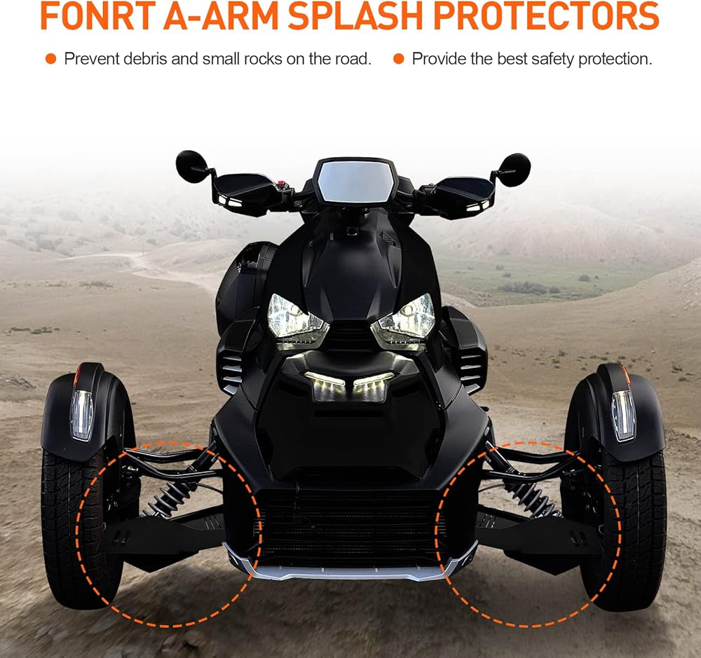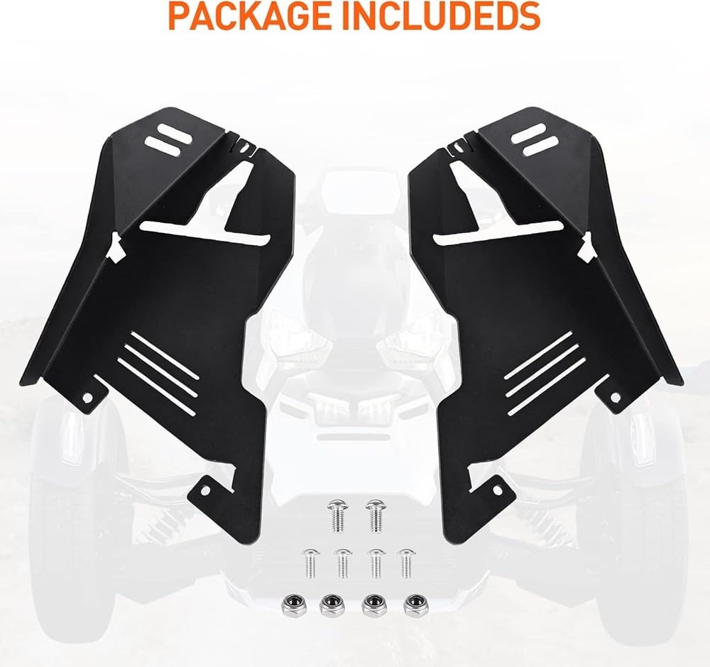 ملاءمة واسعة: زوج واقي الرذاذ الأمامي على شكل حرف A مناسب لجميع موديلات Can Am Ryker، مثل Ryker 600 / Ryker 900 / Ryker Rally / لموديلات Ryker Sport، استبدل رقم قطعة OEM 219400863. تتضمن الوسادة: 2 قطعة من واقي الرذاذ الأمامي على شكل حرف A (يسار ويمين)، مجموعة من مسامير التثبيت، تأتي مع تعليمات التثبيت.