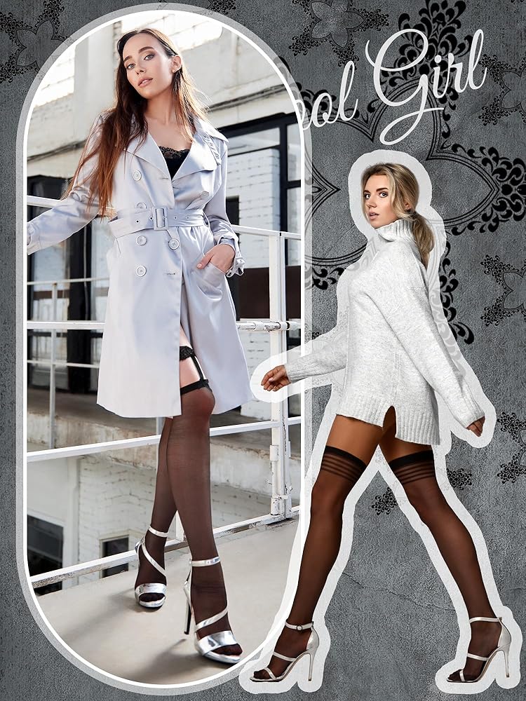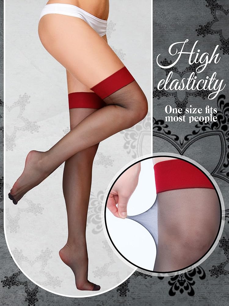Material and Design: indulge in the sensual appeal of our thigh high socks for women made with nice lace silicone top, chinlon and spandex; The stockings showcase a classic lace design that adds a touch of sophistication to any outfit; They are crafted with a focus on reliable quality, though care should be taken to avoid contact with sharp objects to ensure their longevity